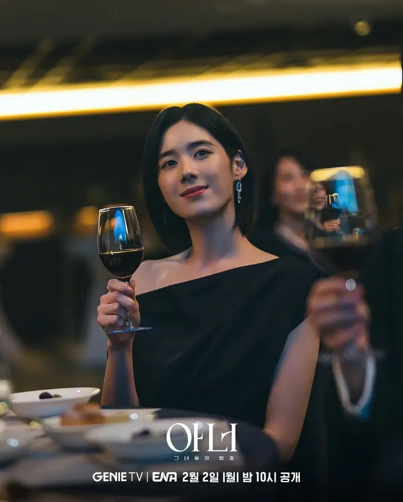 郑恩彩饰演的姜信宰,是律所的冷面CEO型律师,出身于韩国顶级律所“海日”的家族体系,为了摆脱母亲的掌控、坚守自己的律师信仰,毅然与闺蜜们携手创业。她手段狠辣、冷静睿智,是团队的战略核心,但在面对过往丑闻时,也会展现出脆弱的一面,郑恩彩清冷威严的气质,完美贴合这个复杂多面的角色。