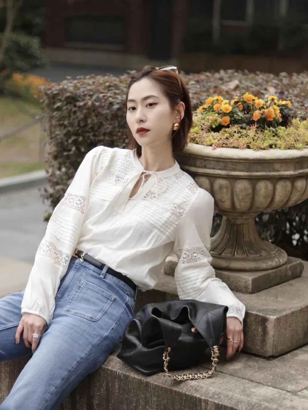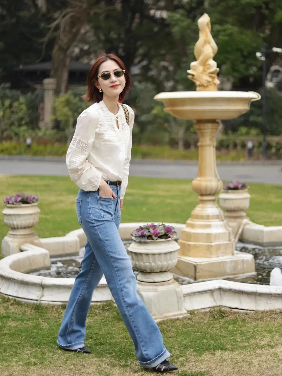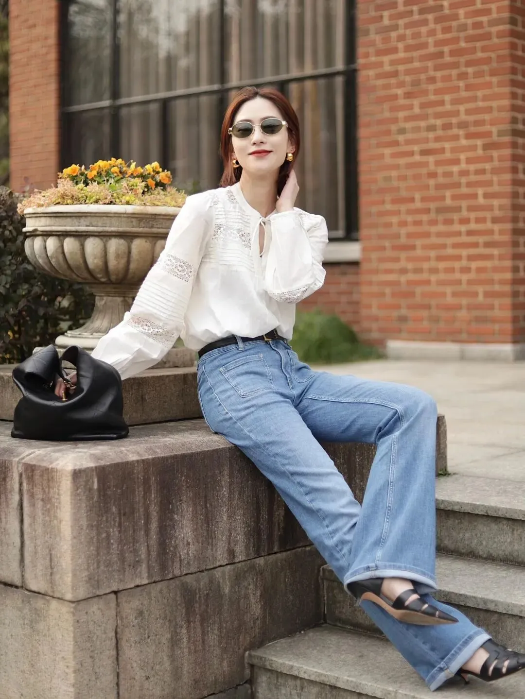 米白蕾丝刺绣衬衫 + 高腰阔腿牛仔裤,自带法式松弛感,在欧式喷泉庭院,搭配墨镜与腋下包,氛围感拉满,是踏青、出街的绝佳选择。#法式松弛风 #蕾丝衬衫 #阔腿牛仔裤 #喷泉庭院 #显瘦穿搭 #出街战袍 #小个子穿搭 #ootd每日穿搭 #氛围感拍照 #出街必备 #时尚博主穿搭分享 #日常穿搭分享 #氛围感写真拍摄 #约会穿搭灵感 #优雅女性穿搭 #高级感穿搭技巧 #简约风穿搭指南 #如何穿出高级感