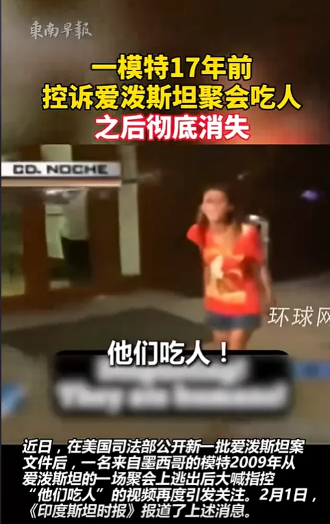 近日,在美国司法部公开新一批爱泼斯坦案文件后,一名来自墨西哥的模特2009年从爱泼斯坦的一场聚会上逃出后大喊,指控“他们吃人”的视频再度引发关注。2009年,这名21岁的墨西哥模特出现在当地一高端酒店外,她刚刚从该酒店的一场私人派对逃离。这场派对中据说聚集了美国政商名流以及一些出现在爱泼斯坦文件中的人。这名女子逃出后开始尖叫“他们在吃孩子”,之后被警方逮捕并从此彻底消失。当年,所有人都觉得她疯了。如今,爱泼斯坦案最新档案陆续公开,这段视频才出现在世人眼前。2026年1月30日,美国司法部继续公布已故富商杰弗里·爱泼斯坦案相关调查材料。司法部副部长布兰奇在记者会上表示,司法部当天额外公布超过300万页相关材料,均与爱泼斯坦案件有关。爱泼斯坦是名身价5亿美元的富豪,曾建立起一个隐秘的性交易网络,于1994年至2004年伙同女友招募未成年少女,在纽约、佛罗里达、萝莉岛等地的豪宅里为他本人和权贵好友提供性服务。2005年,有受害女孩家长向警方报案,爱泼斯坦的恶行首度曝光,但佛州检察官与爱泼斯坦的律师团队达成协议,于2008年仅以州法召妓罪轻判其一年零一个月监禁,且允许其白天外出办公。据报道,时任联邦检察官阿科斯塔刻意隐瞒受害者信息,使案件未被深究,而阿科斯塔于2017至2019年担任了特朗普1.0政府的劳工部长。爱泼斯坦出狱后,继续与各路名流交往甚笃。2019年,爱泼斯坦的旧事被捅上媒体并迅速发酵,他本人则因涉嫌合谋拐卖未成年人被捕,却在距开庭审判仅一个月时死于曼哈顿的监狱里,官方结论为“自缢身亡”。此后,围绕爱泼斯坦案的各种阴谋论层出不穷,民间要求公开爱泼斯坦案档案的呼声与日俱增。2024年大选期间,特朗普及其团队多次指责隐匿爱泼斯坦案真相是“民主党和深层政府的阴谋”,承诺当选后立即公开有关文件。特朗普重新执政后自食其言,对公布爱泼斯坦案真相转持拖延和暧昧的态度。