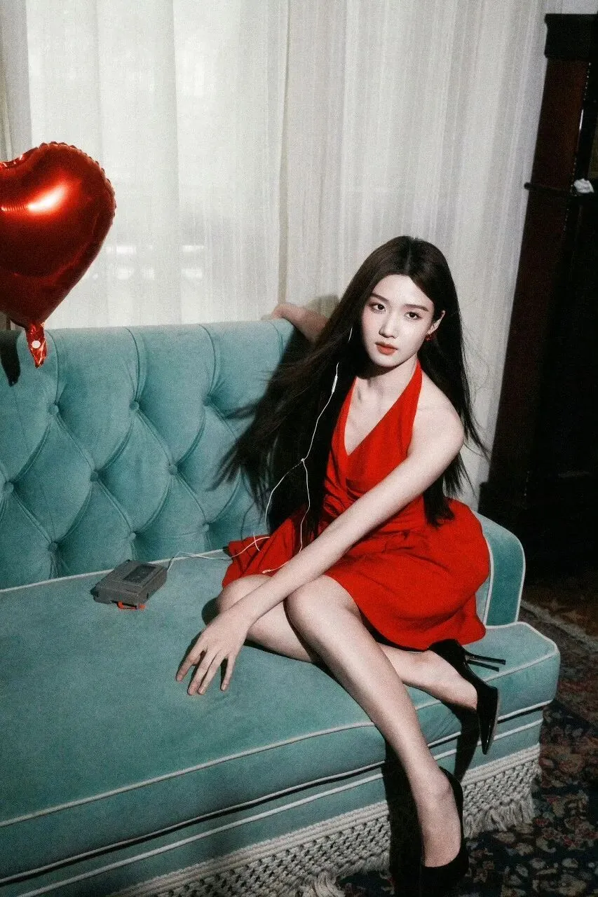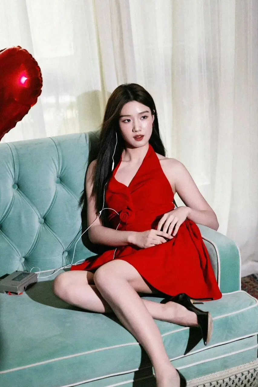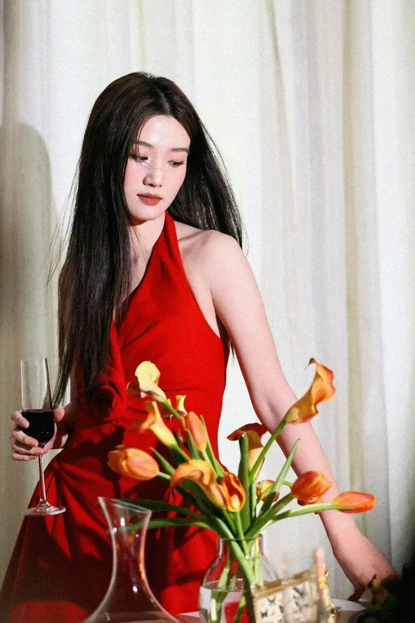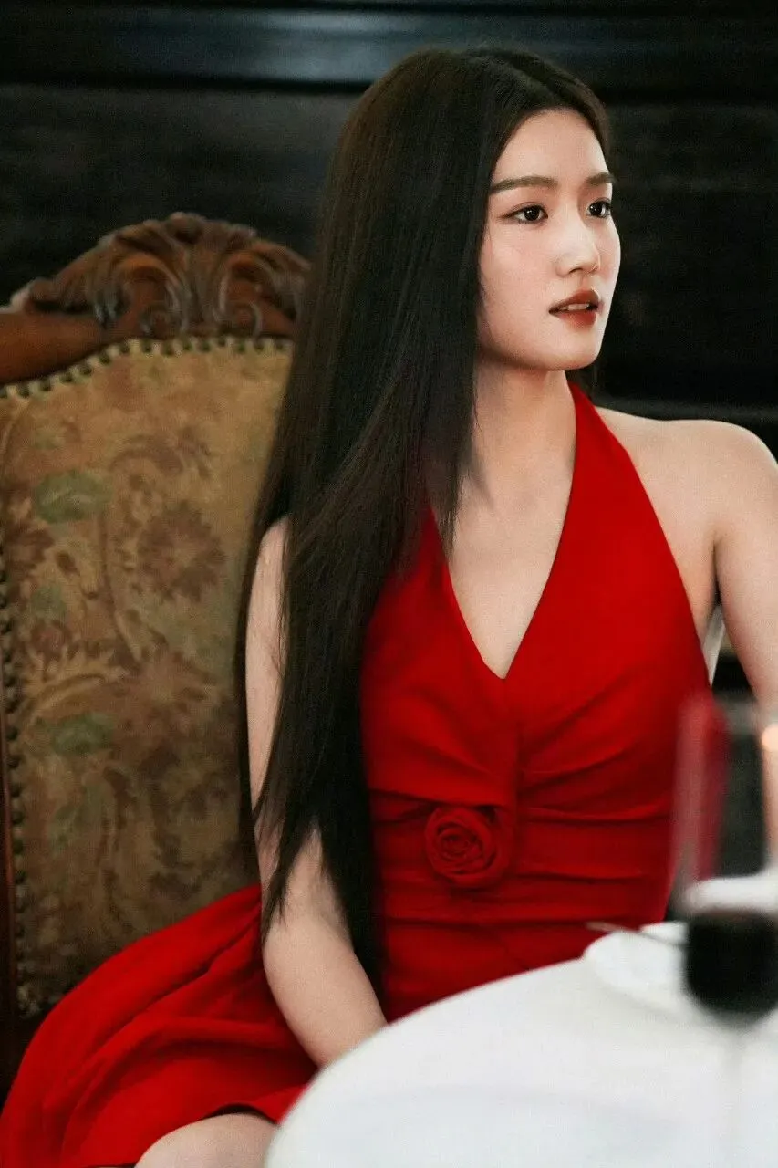 卢昱晓红裙写真,冷酷又娇俏~