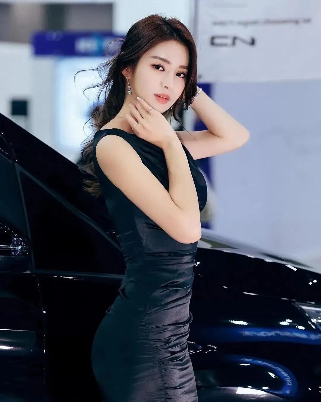 尤妮丝黑色长裙写真,纤腰翘臀,黑丝大长腿,惊艳每一眼!