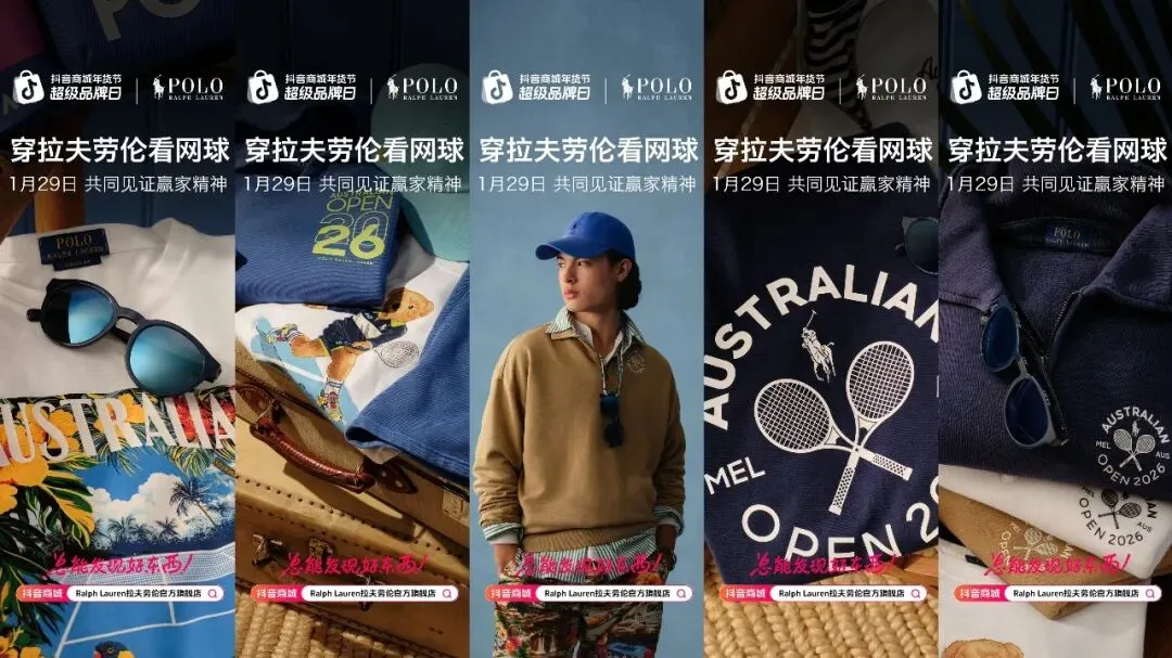 而抖音商城超级品牌日,则以生态之力,从前期与品牌内容共创、合作邀约达人矩阵种草,到明星大咖跨界互动,一系列立体化传播策略不仅营造了站内浓厚的澳网氛围,更是强力助推拉夫劳伦打破话题、声量破圈,真正实现1+1>2的效果。