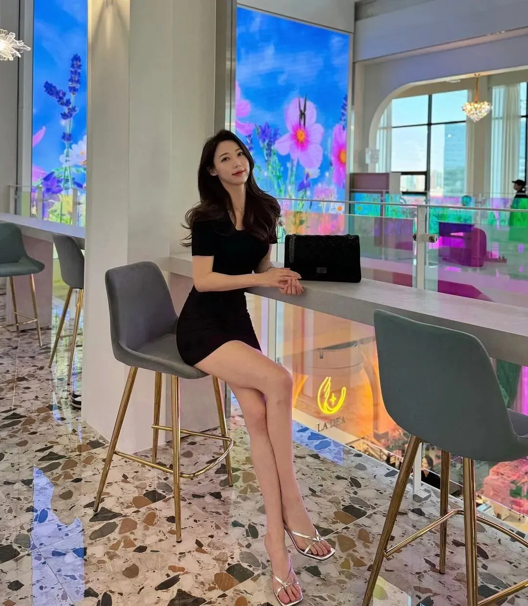 尤妮丝黑色长裙写真,纤腰翘臀,黑丝大长腿,惊艳每一眼!