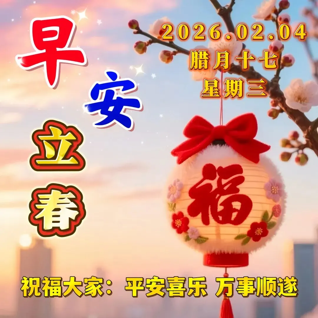 🌈今天是2月4日立春,祝福数我最温馨,🌊吉运好运都来临,幸福如意似井喷,💝心情愉快又滋润,事业成功心气顺,🌻美满快乐围成群,美好甜蜜情谊真!🌞立春到了,愿你好运始于春天,开心天天相伴!🌅