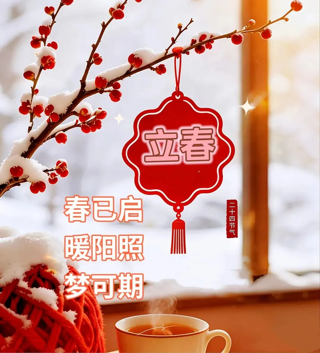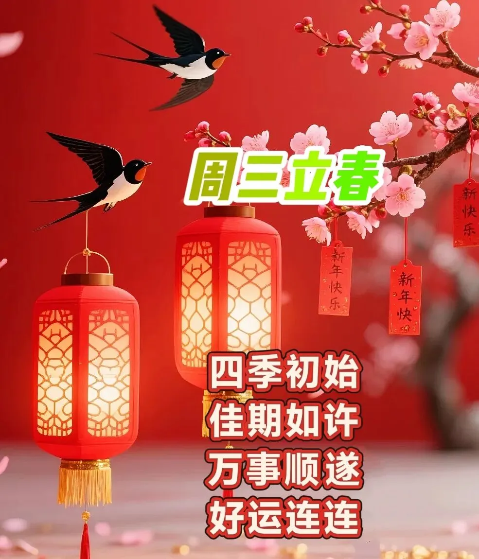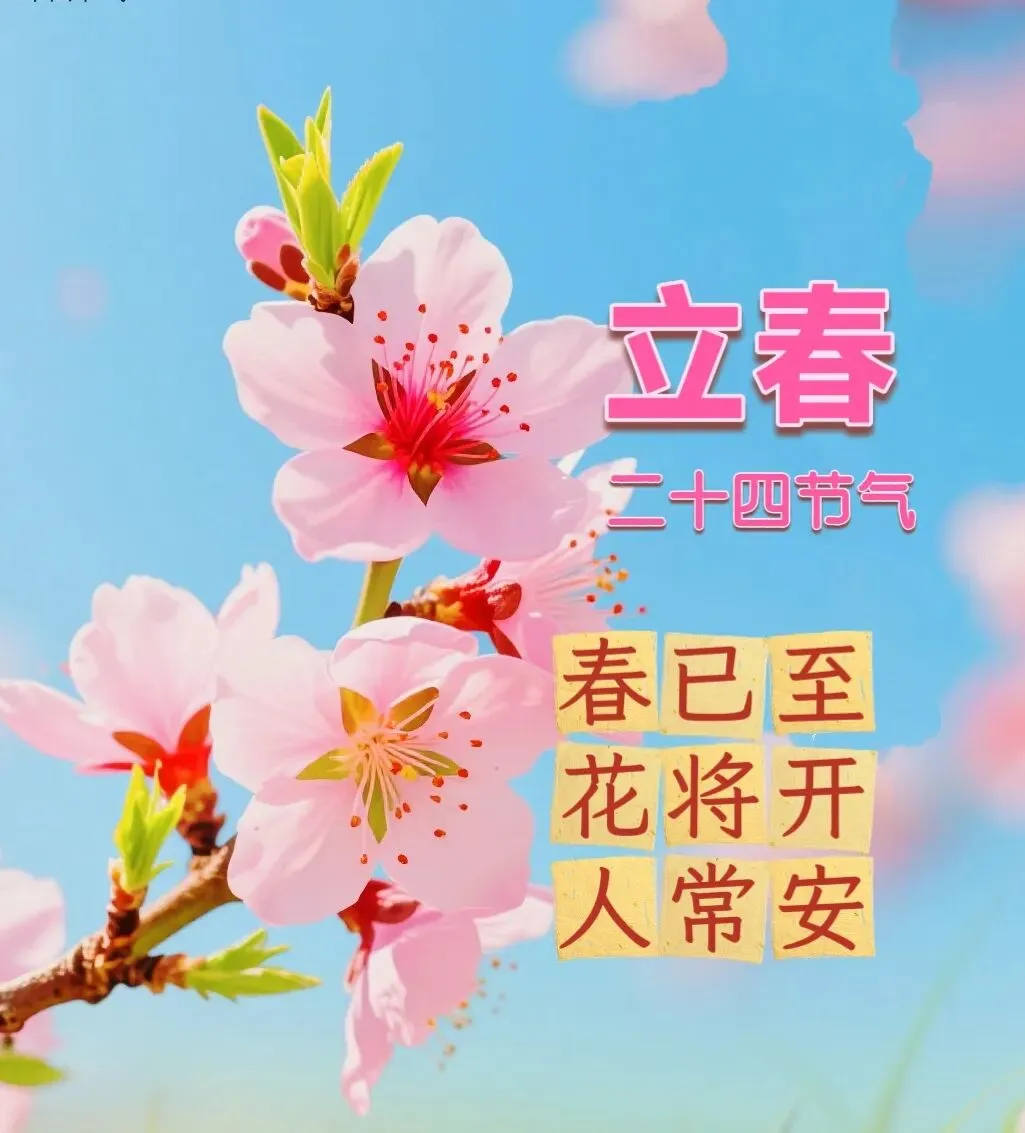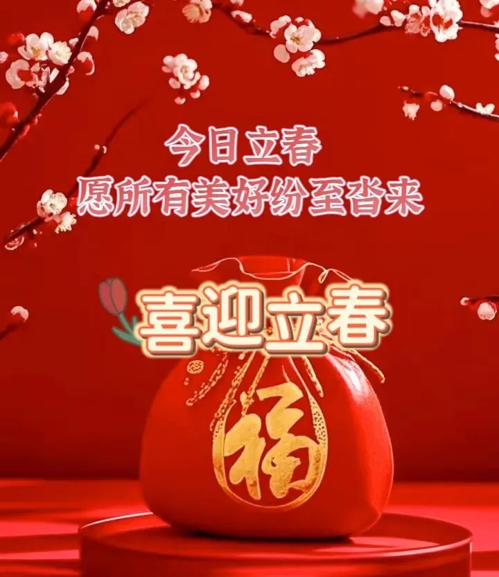 立是开始,春是希望,一缕春风拂动,万物欣欣向荣!今日立春,愿时光不扰,心事不荒,步履轻盈,心向远方,所有美好,纷至沓来!今日立春,祝你快乐! 二月,立春之月,是冬与春的使者,冬天已渐行渐远,春日的美好正踏步而来。四时之始,冬尽风暖,人生幸事万万,一春圆满千欢。愿我们如阳光般明媚,如花朵般绽放,享受人生的美好与繁华!