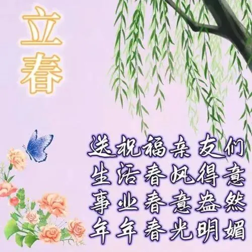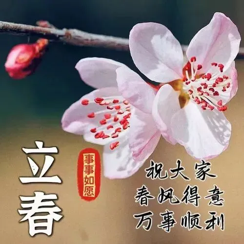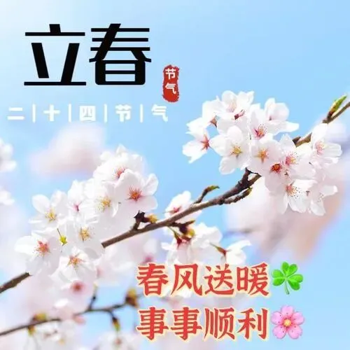 春风轻拂,将幸福轻轻摇曳;春雨绵绵,丝丝快乐滋润心田。春雷响起,平安之声回荡心房。春花怒放,美好与吉祥盛开于心绪。立春节气,愿你事事如意,快乐无限!