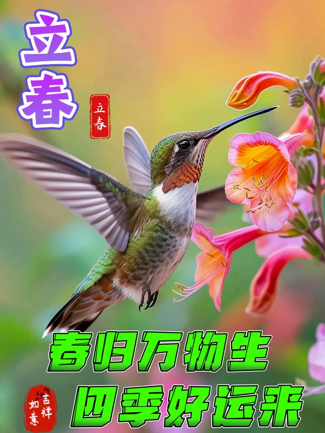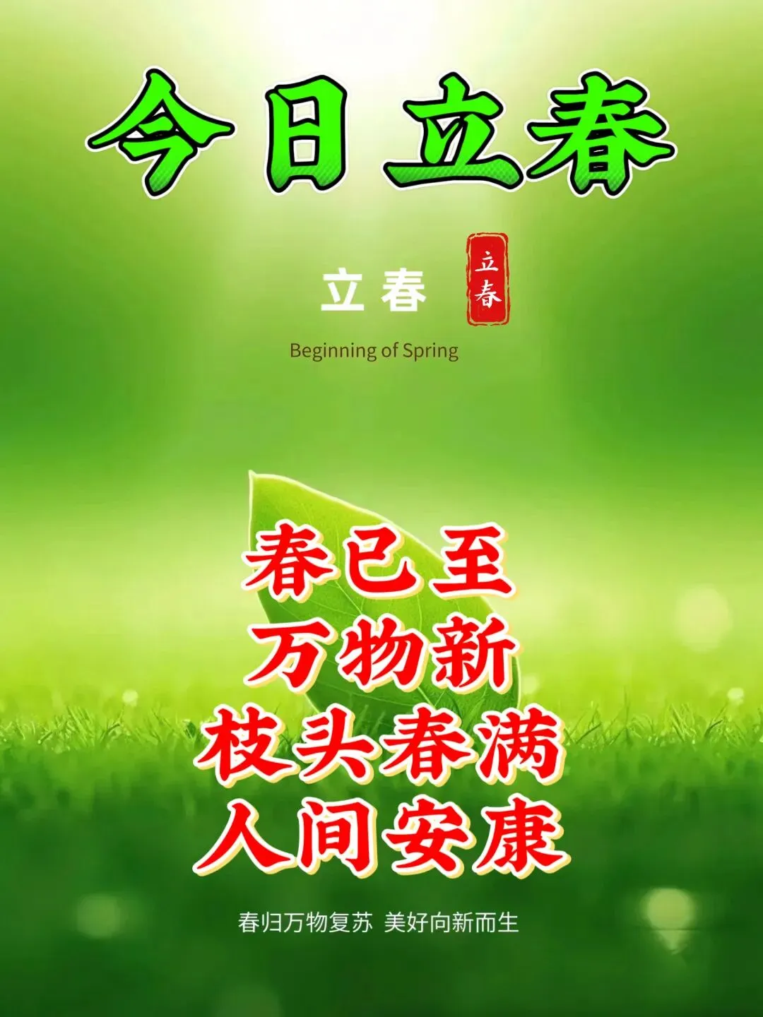 9、立春迎来万象新,春意盎然喜庆临。阳光明媚抚人心,快乐幸福绕身辉。健康平安长伴随,财富进取步步齐。立春祝福送福音,美好未来与你赴。
