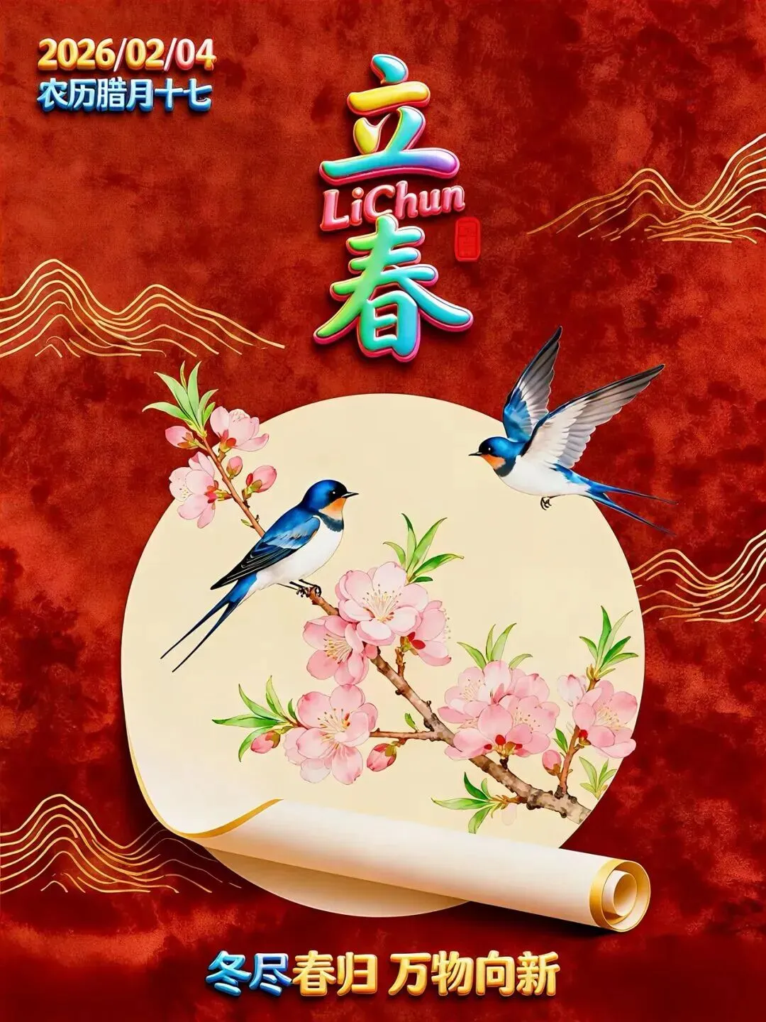 今日立春,寒冬已过,暖阳升起,寒气渐消,大地回春,四季又开始了新的轮回!让我们一起迎接春天的到来,享受大自然的美好馈赠!春暖花开,万事如意!立春快乐!