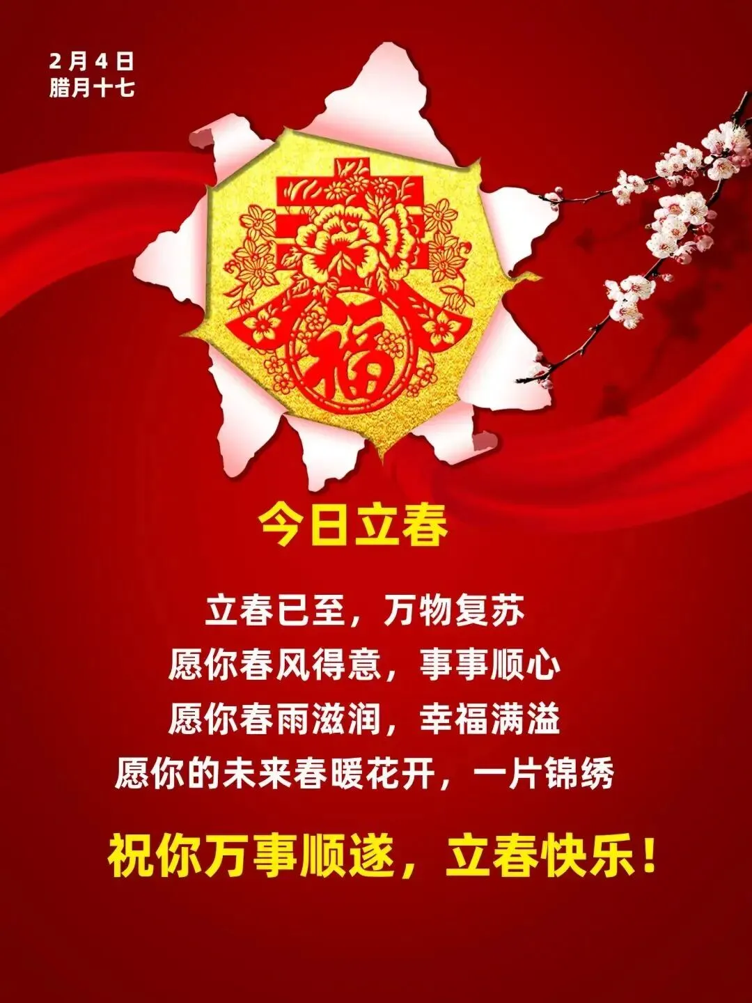 4、立春日,迎春第一号,你的心愿我知道:俏也不争春,只把春来报,待到山花烂漫时,月在丛中笑。愿你好人好梦、好梦成真、青春永驻、永远和春天同在!
