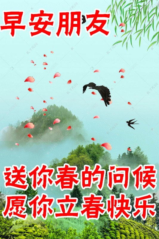 1、小麦拔节锋正锐,鱼儿游动情舒畅,燕子筑巢刚开忙,绿芽初长现茂盛,万物生长趁 旺,人为理想开始闯;祝立春快乐!前途似锦!