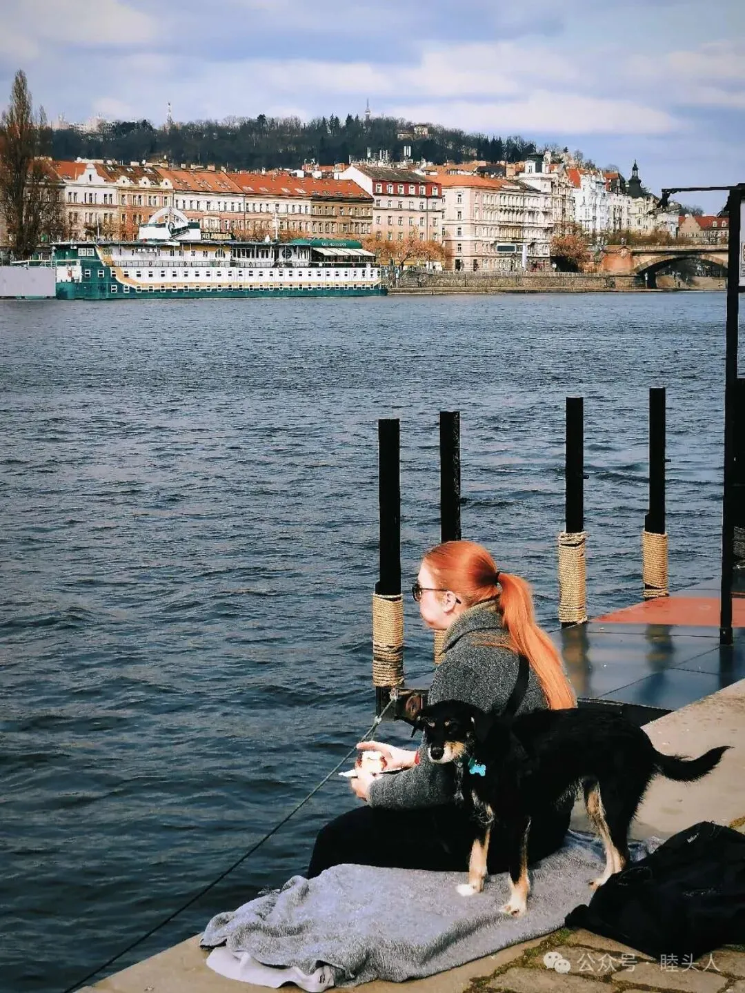 第二天一早,我们前往河边的早市,想看看都有些什么,顺道吃个早饭,德国的早市和国内的菜市场没什么两样,有的时候蔬菜卖的比超市还贵,我预感布拉格的早市也差不多。但L君对此非常期待,他已经细致查了许多攻略,早已预备了3000克朗,而我和C君准备大吃一通。早上的河风吹得人很舒服,天气完全晴朗,一点儿也看不出昨夜下过雨,雨水把产杂在空气中的灰尘一扫而空,太阳并不温暖,但极其明亮,照着河水粼粼,蓝色的河水和蓝色的玻璃瓶子相互衬托,有女人牵着狗坐在河边。