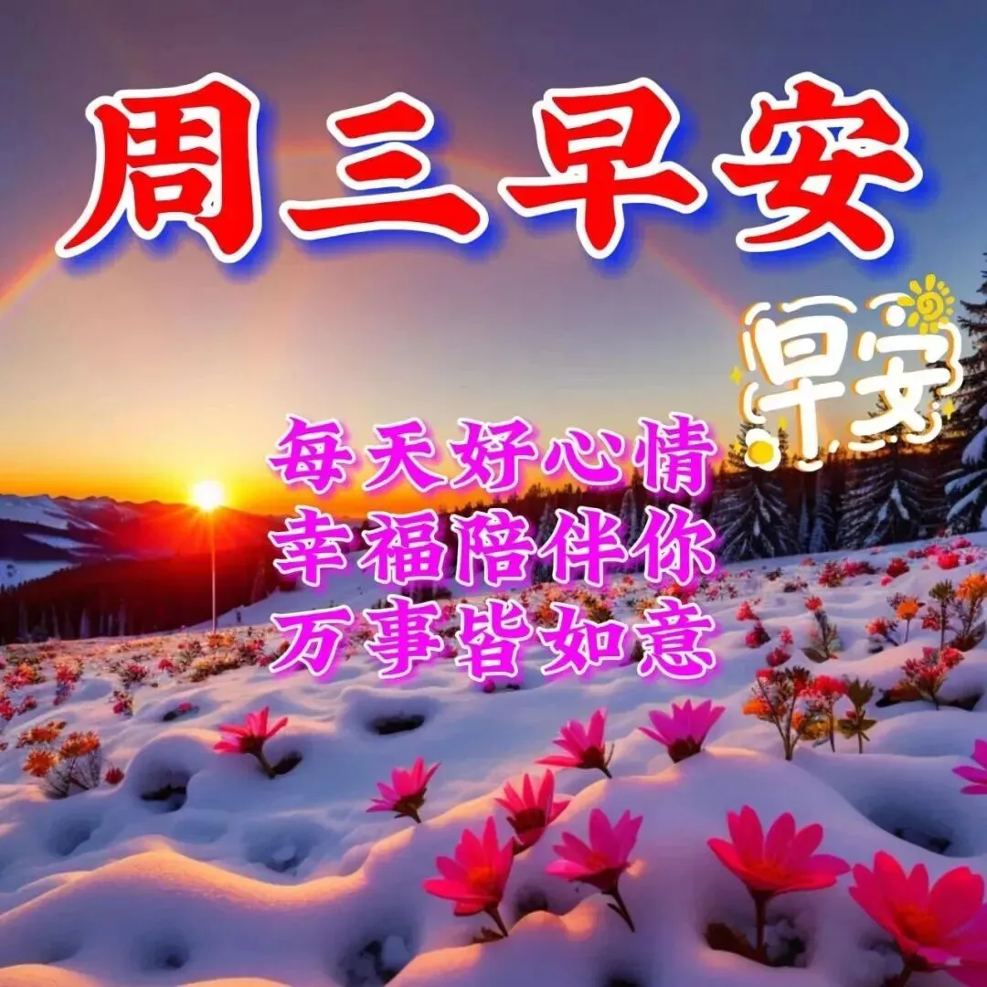问候如诗,句句皆藏情长;祝福如歌,曲曲满是悠扬。珍藏昨日的美好微笑,送上今日的顺遂吉祥。人生尝遍百味,唯有健康最是珍贵,愿我们都能守护安康,乐享幸福。新的一天,温暖相伴,大家早上好!周三清晨送安康☀️,天寒莫忘添衣裳🧥,温茶暖饮护身旁☕。愿各位亲朋好友👨👩👧👦,冬日常安无纷扰,事事顺心少烦忧,日子温柔多欢喜,平安顺遂伴朝夕🙏,早安吉祥~🎊周三🌤️ 晨光铺路,温柔相伴👩❤️💋👨,不慌不忙,稳步前行🧧,愿日子安暖,万事顺意,岁岁安然~🥰 一半努力耕耘,一半从容接纳🙏,三餐安稳,四季无忧👏,所有美好都恰逢其时。🌅 一半努力,一半从容,把烦恼放轻🥳,把美好珍藏🧧。愿三餐安稳,四季无忧,平安常伴,日子安暖💕,万事顺意,岁岁长安~🙏