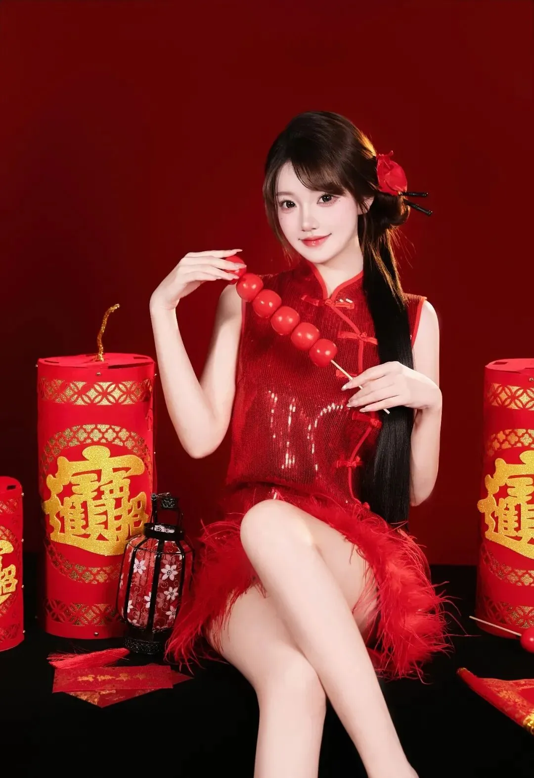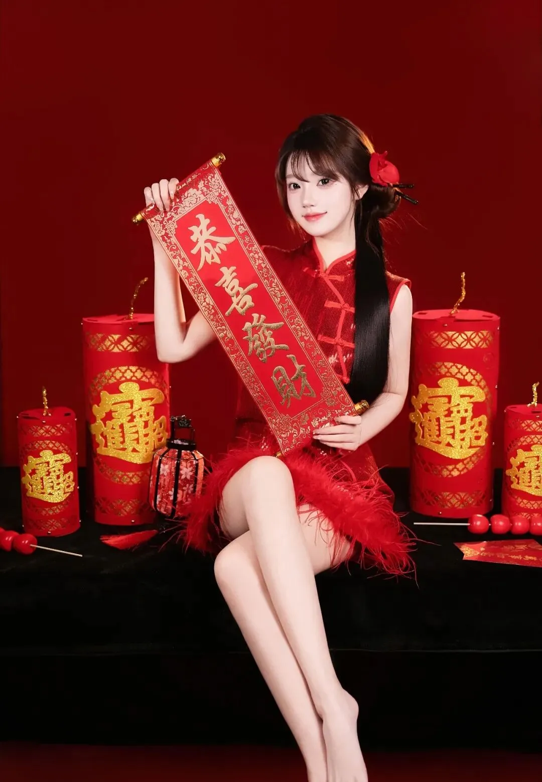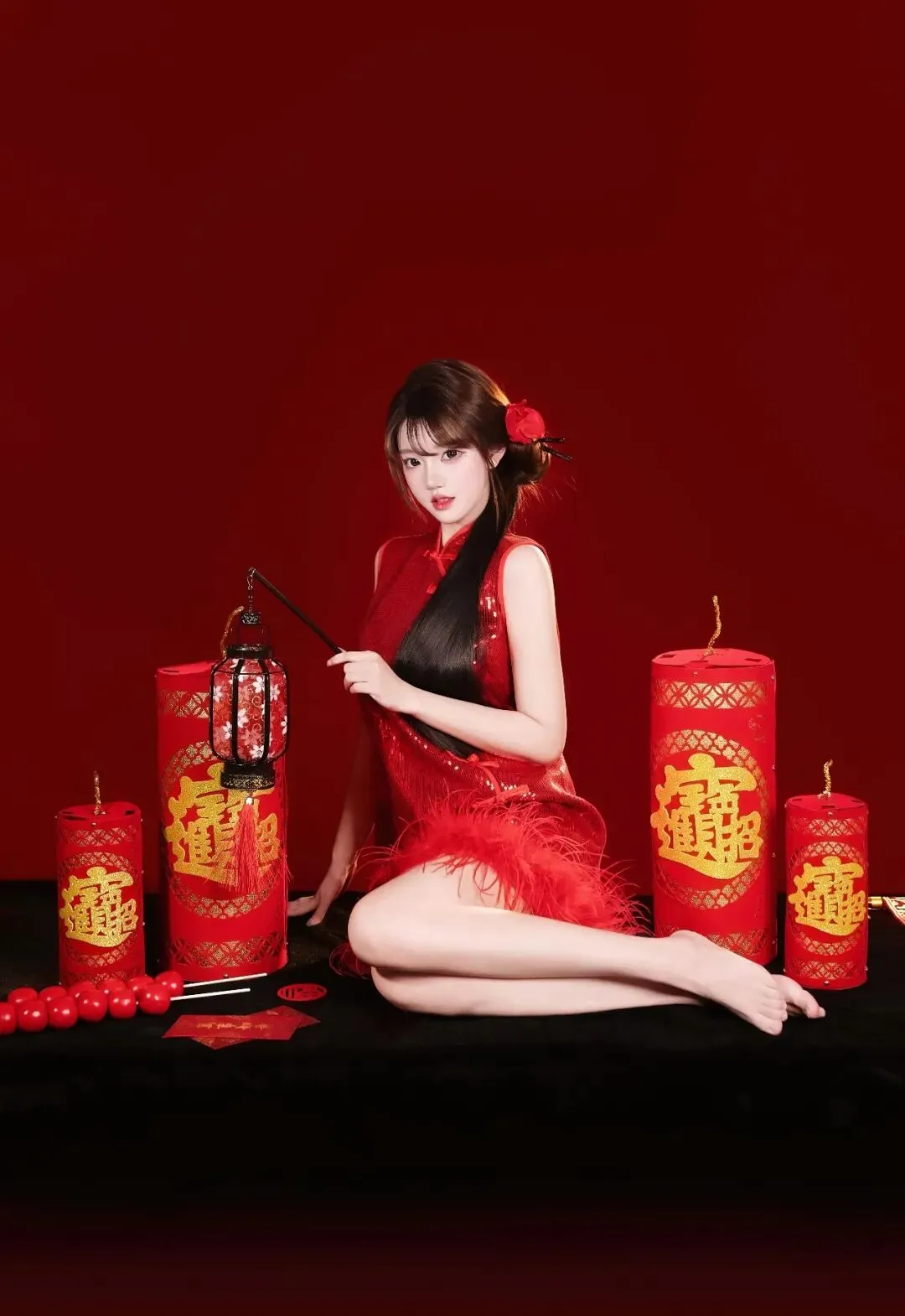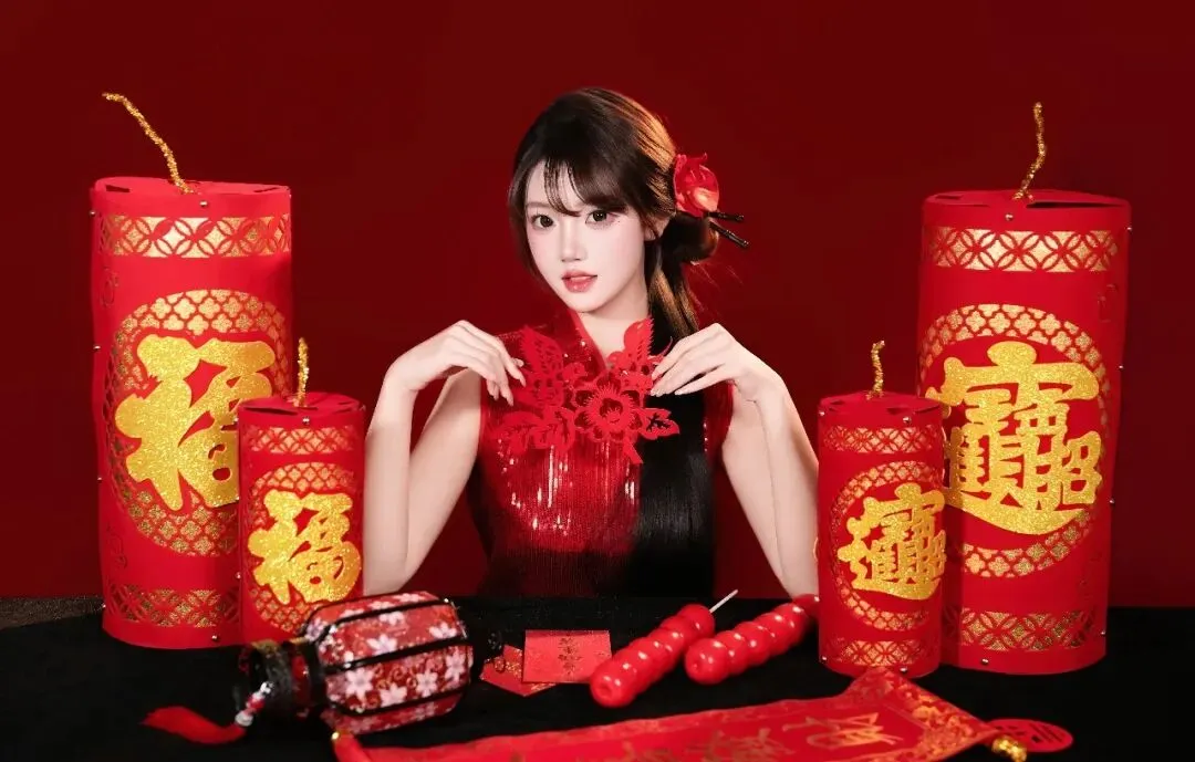 少女写真丨红妆俏影邂逅新春火红韵致