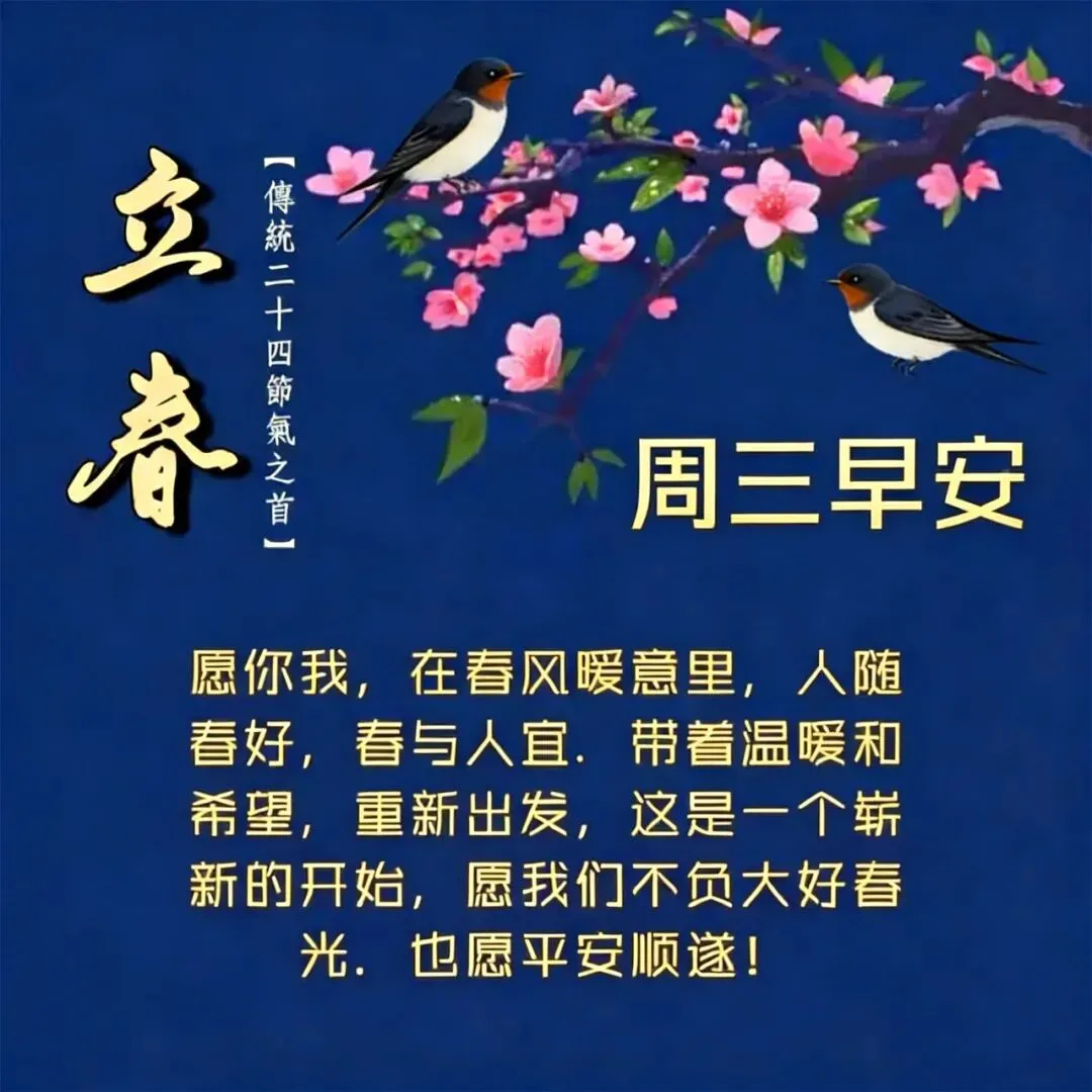 今日立春,万物复苏,枯树逢春好运来,欣欣向荣皆向好!愿好运从春天开始,天天开心相伴!春天快乐,周三早安吉祥!