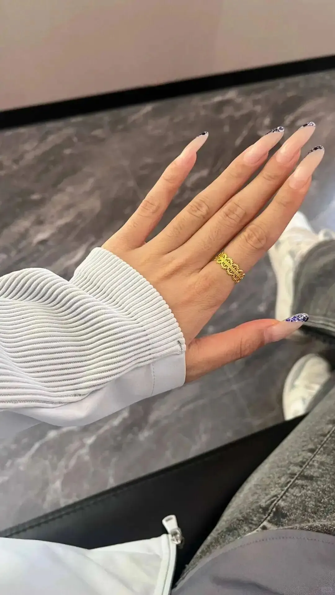 我选的这个宽度大概在2.3mm,对于手指不那么纤细的姐妹来说,这个宽度简直是“作弊神器”。太细了显肉,太宽了显笨,这个尺寸,刚好卡在显瘦的那个点上。