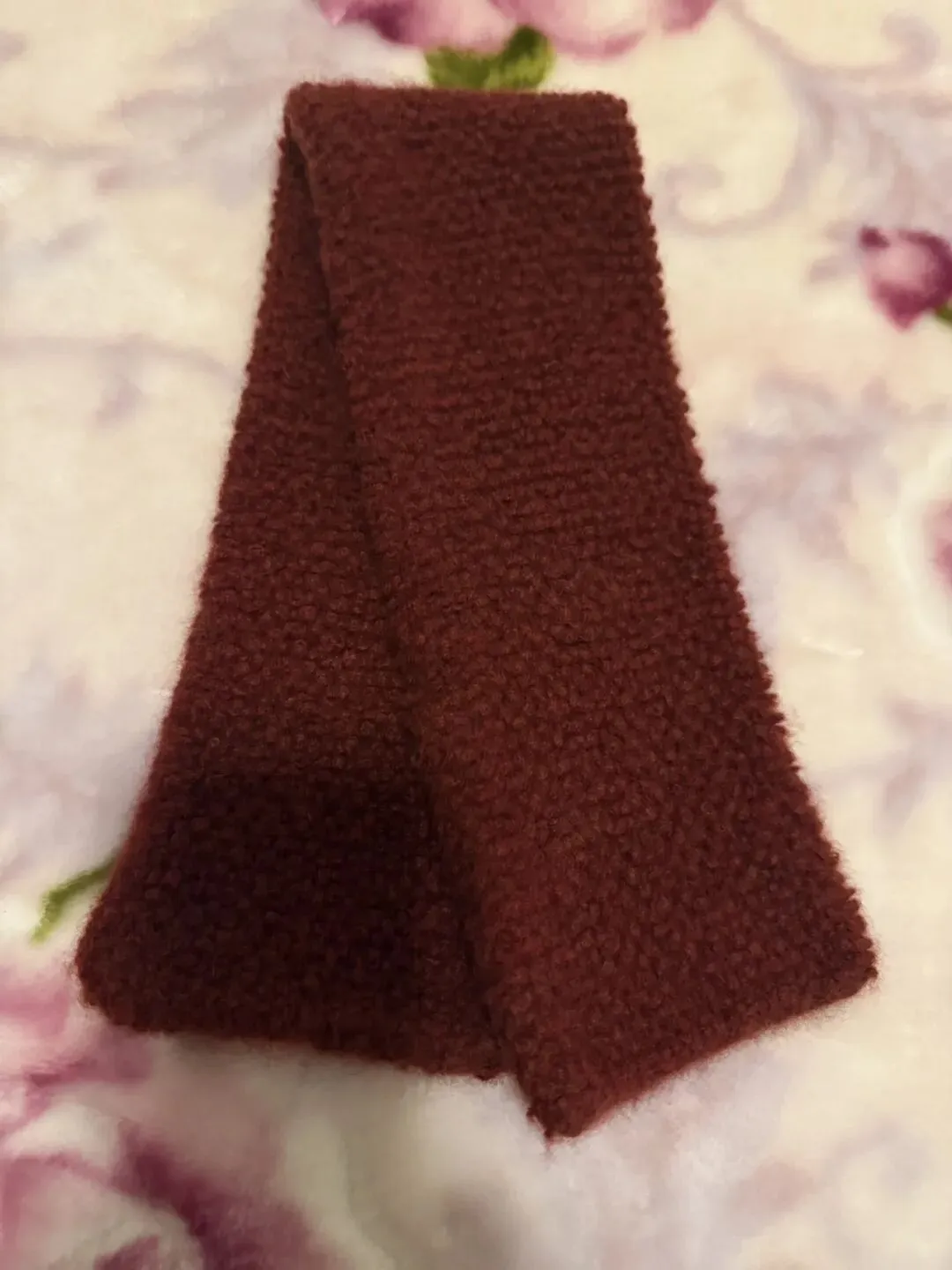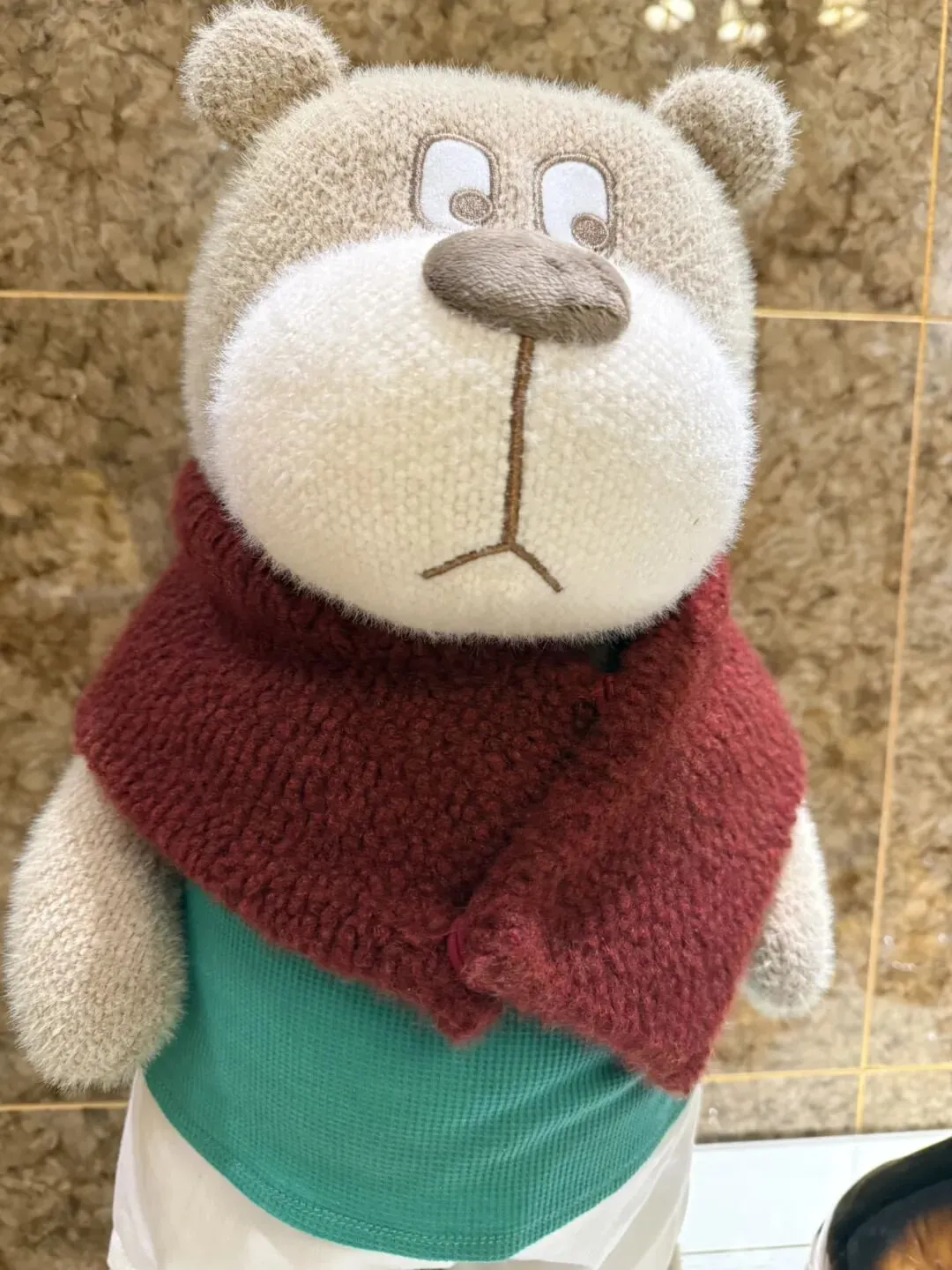 单股羊绒线织双层,缝4个钮扣,冬季里的一抹红,小熊做一回模特秒变靓仔。