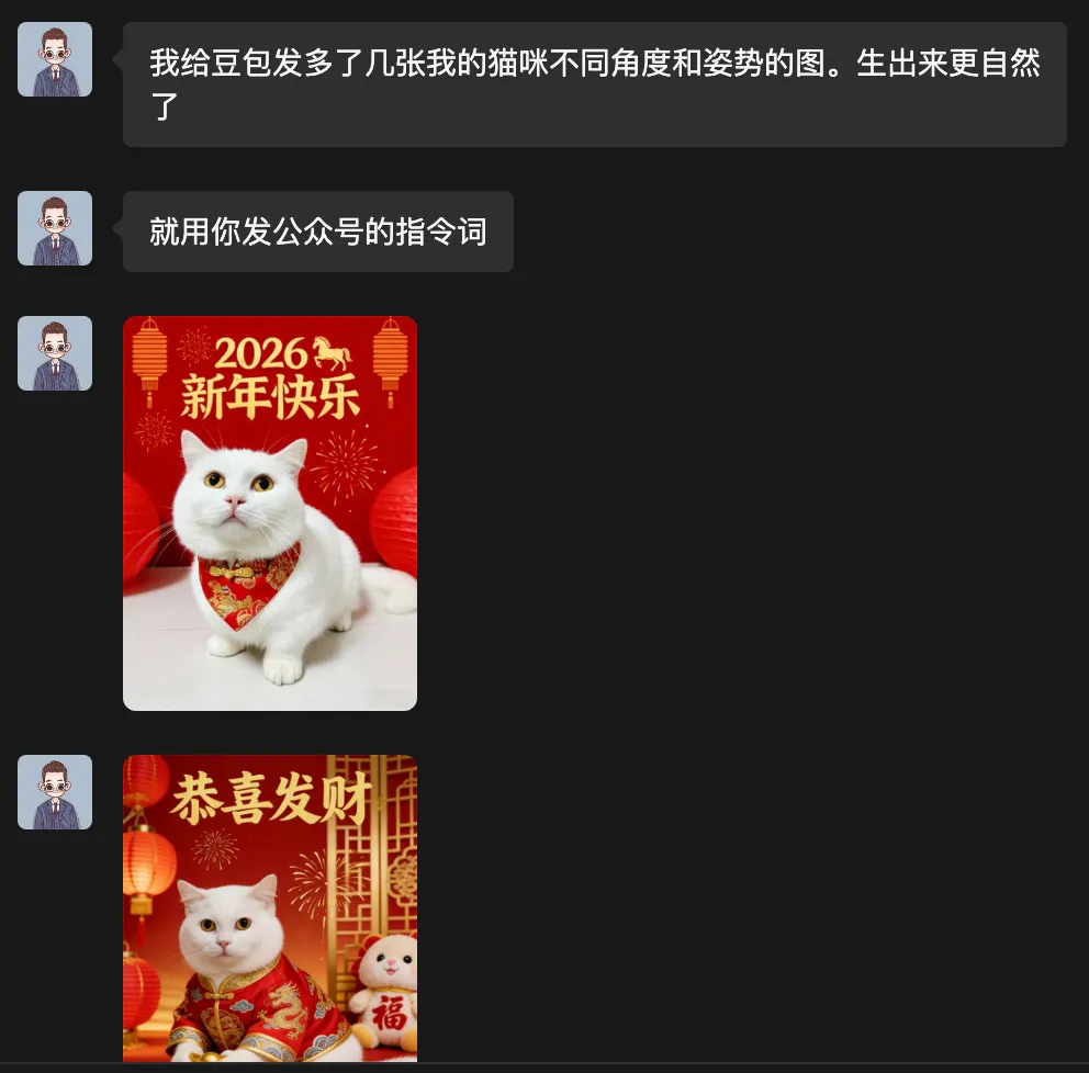 杰哥把他的猫咪的多个角度的图当参考图,生成的猫咪更接近真猫本猫了!
