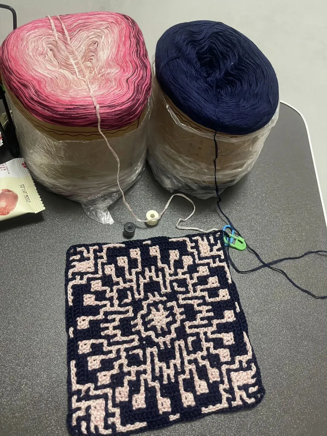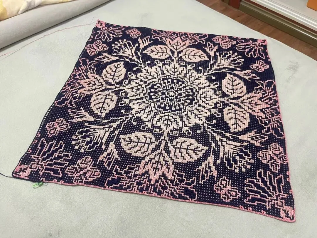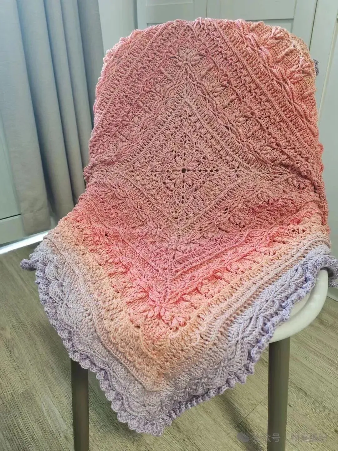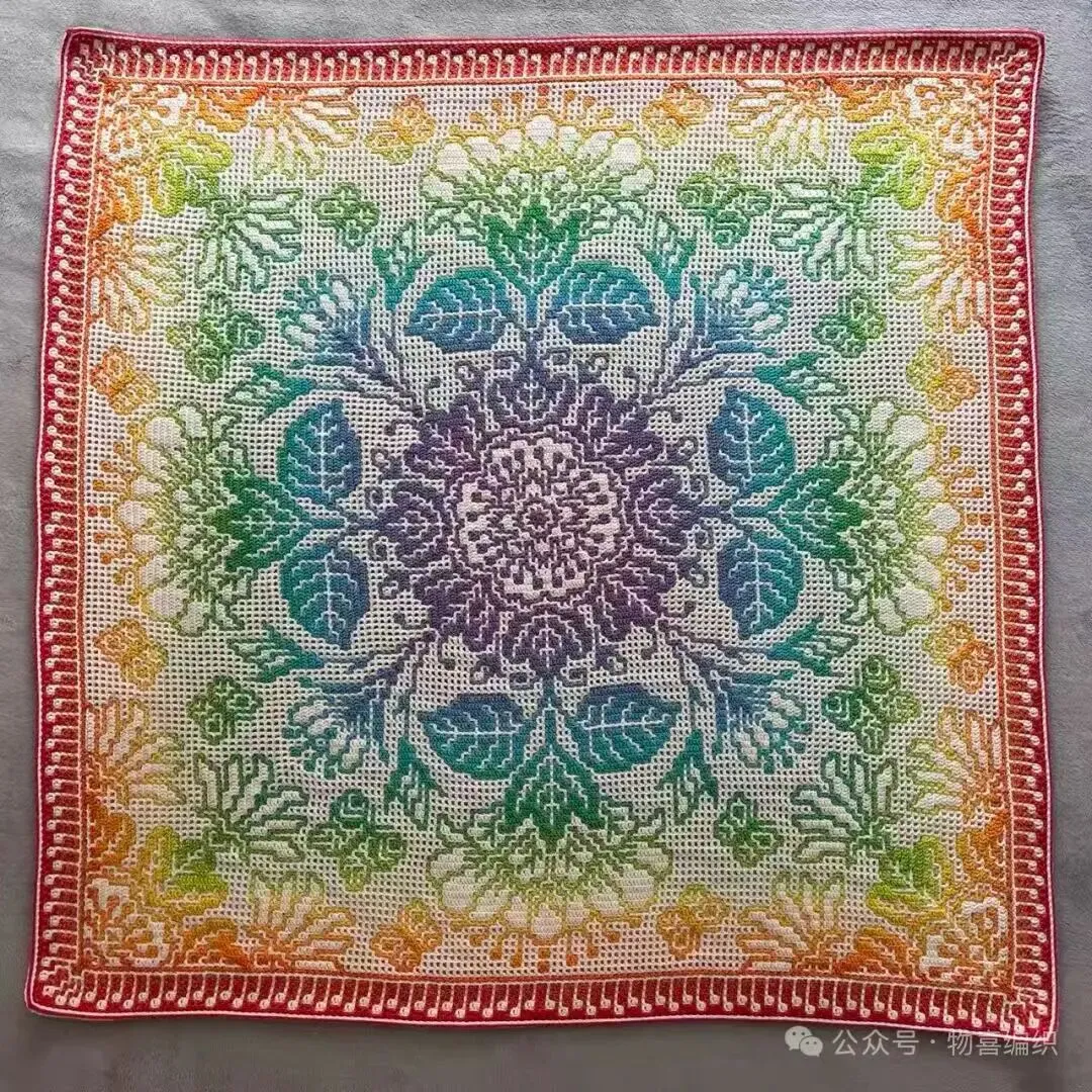 丝绵马赛克蝴蝶毯子返图,2个315g足够,用双锁针背面也有花样。