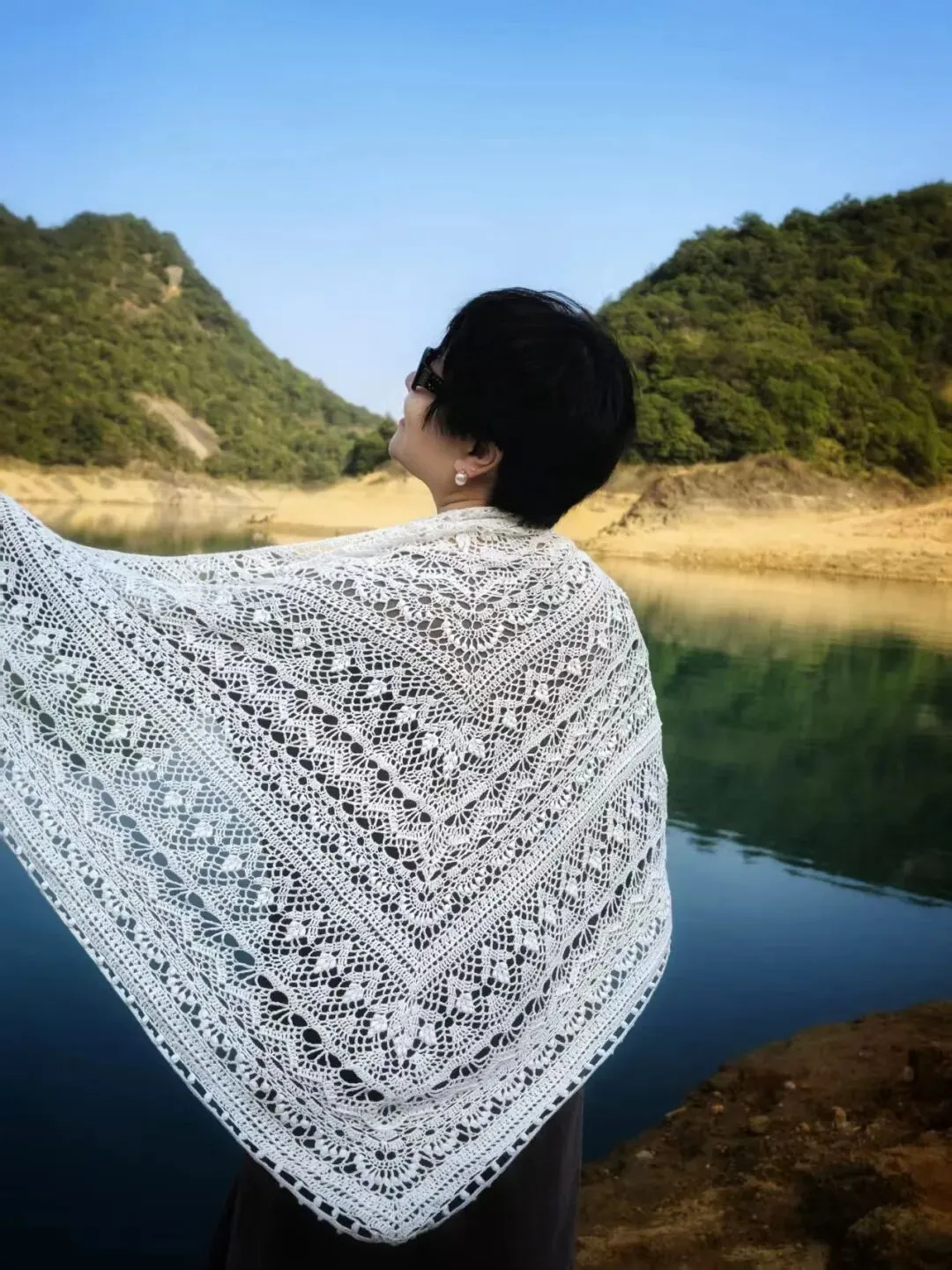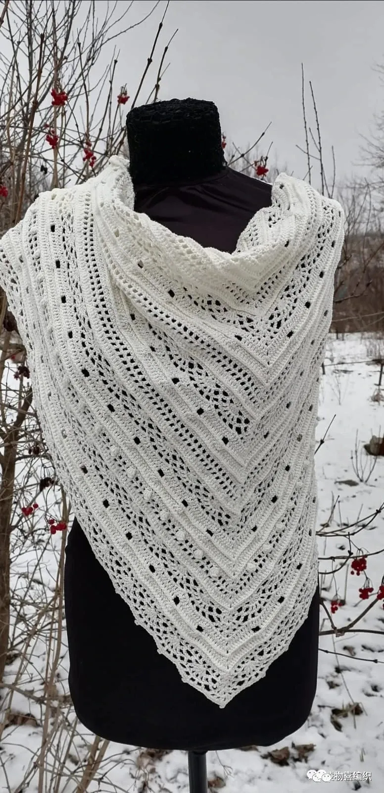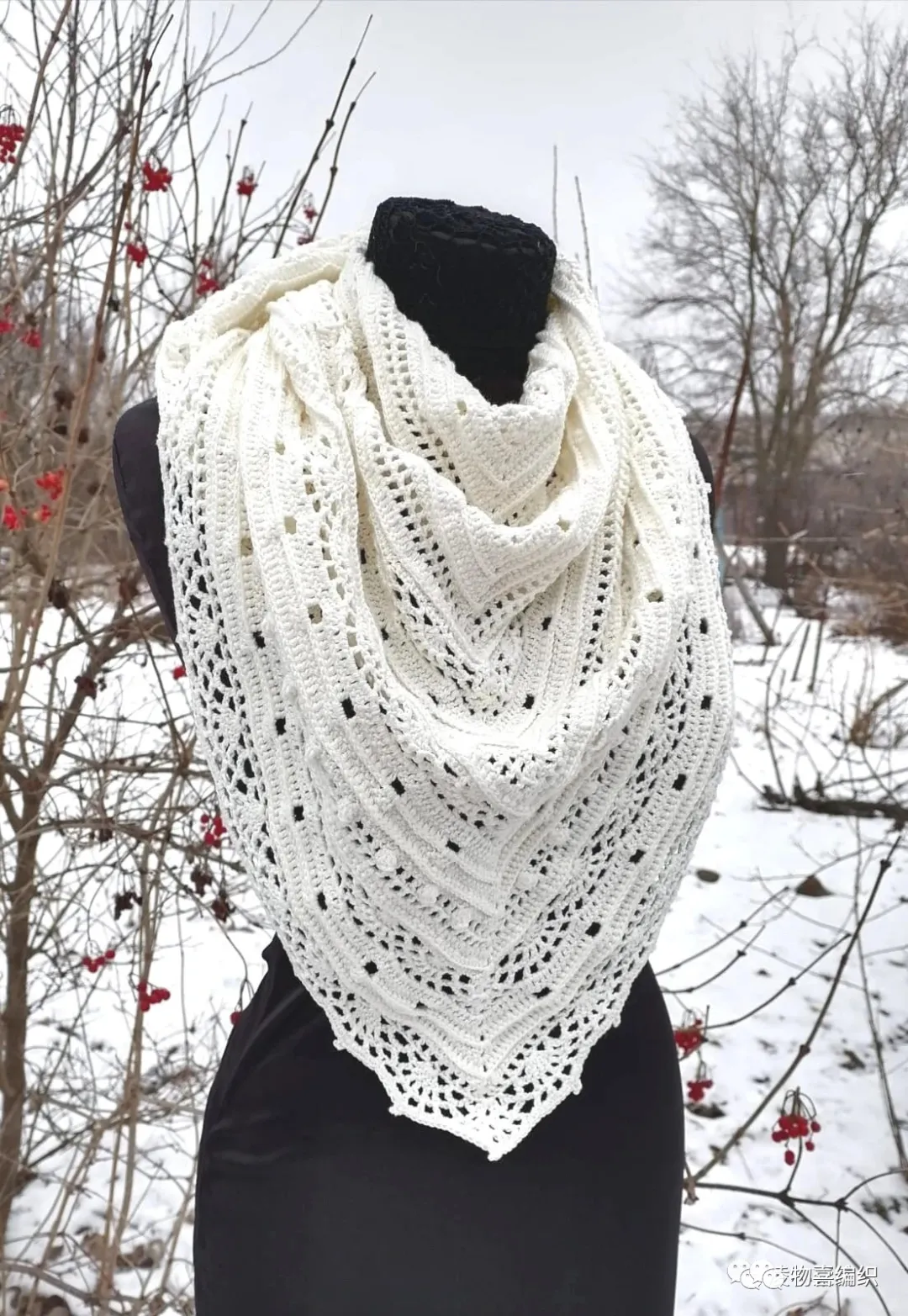 女神披肩返图,用的手工蛋糕线特级丝绵纯色白色。今日披肩Epiona shawl俄语,Epione(厄庇俄涅),她是治愈女神。真的太喜欢这个披肩了画了中文符号买线送,或者直接用原版图解发群里了(循环9-34行)。购买白色可以和文末的现货凑2个包邮一起发,