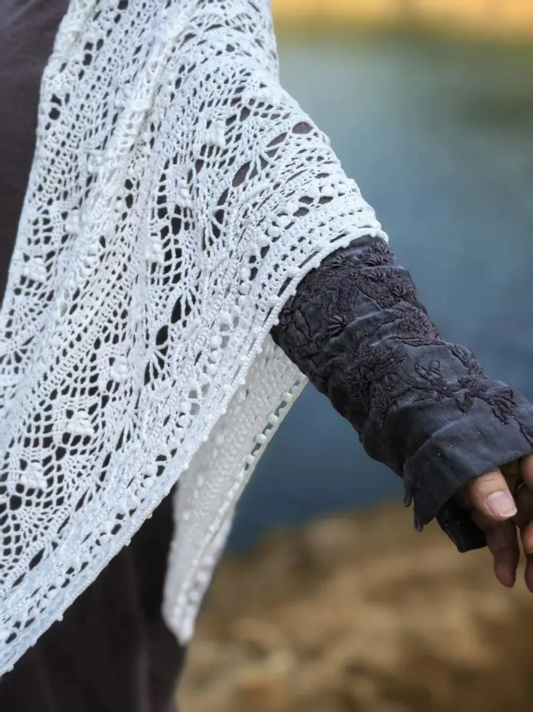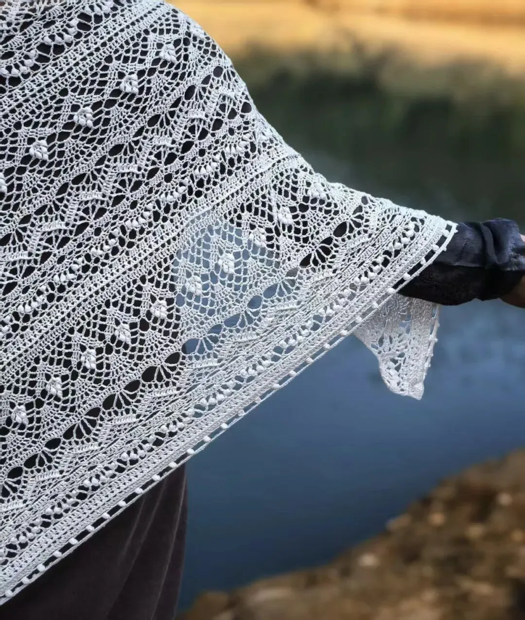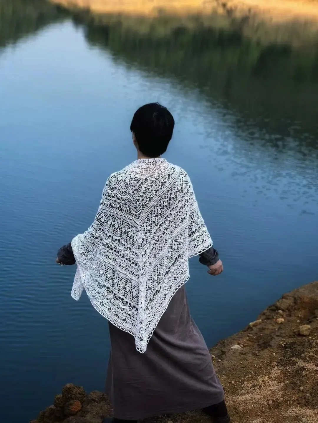 女神披肩返图,用的手工蛋糕线特级丝绵纯色白色。今日披肩Epiona shawl俄语,Epione(厄庇俄涅),她是治愈女神。真的太喜欢这个披肩了画了中文符号买线送,或者直接用原版图解发群里了(循环9-34行)。购买白色可以和文末的现货凑2个包邮一起发,