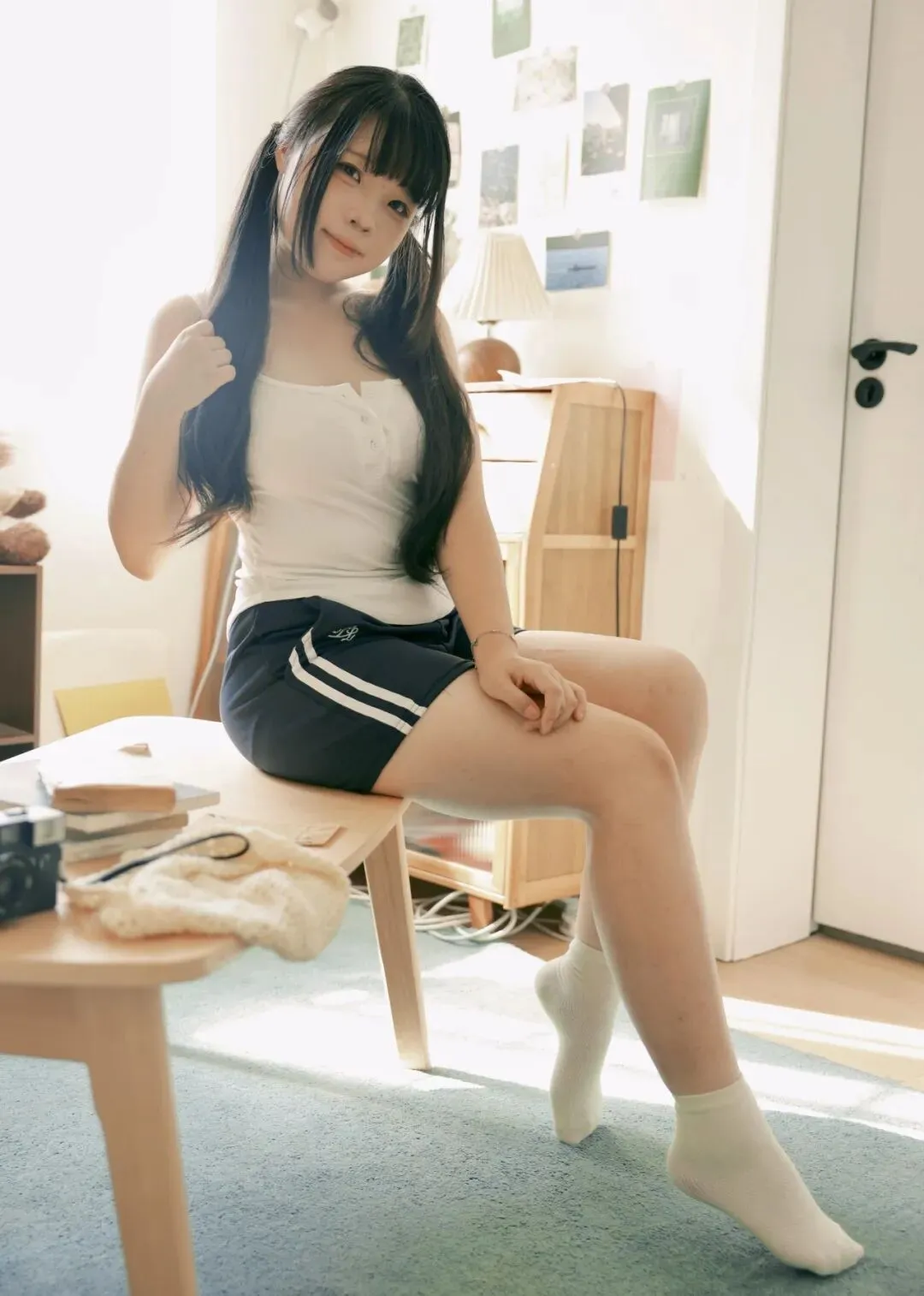 模特鱼子酱Fish 粉色吊带连衣裙性感写真