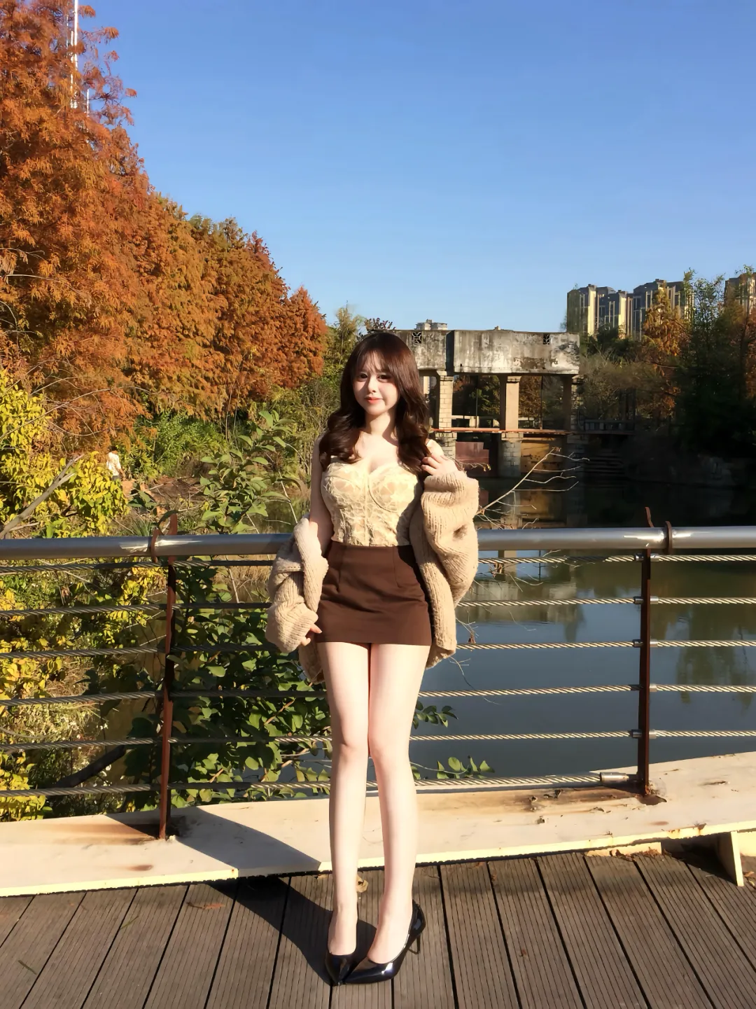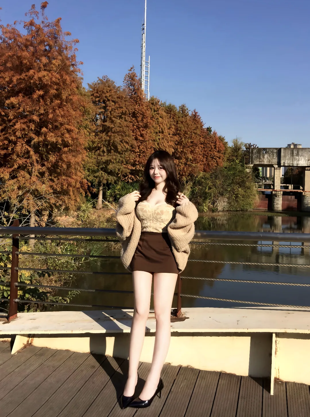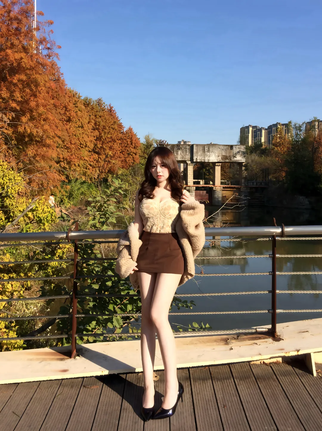 今天要分享的是一位温柔迷人的秋日美女,秋日晴空下,一位美女伫立在桥边,比风景要更迷人。话不多说,就让我们一起来欣赏一下吧!