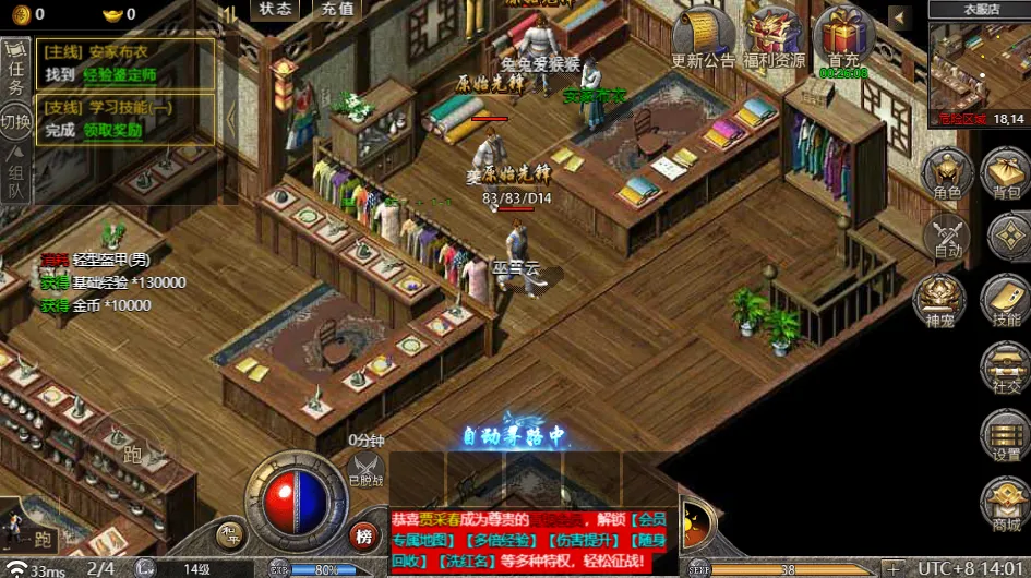 主线任务:前期跟着主线任务走,经验丰厚,还能熟悉游戏玩法。这是新手快速提升等级的主要途径。