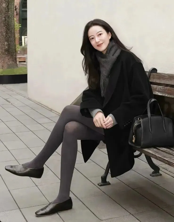 先说.说通勤.装。.上班族每.天赶时.间,穿搭既.要得体.又要.方便。黑.色长款大衣.配灰色高领.衫,简.单大方。.围巾.不用系得太.复杂,随便.挂在脖子.上就很好看.。下身选.灰色连裤.袜和.黑色粗跟.短靴,走.路稳当,.还不累脚.。这样.穿不仅显高.,还.特别有气质.。