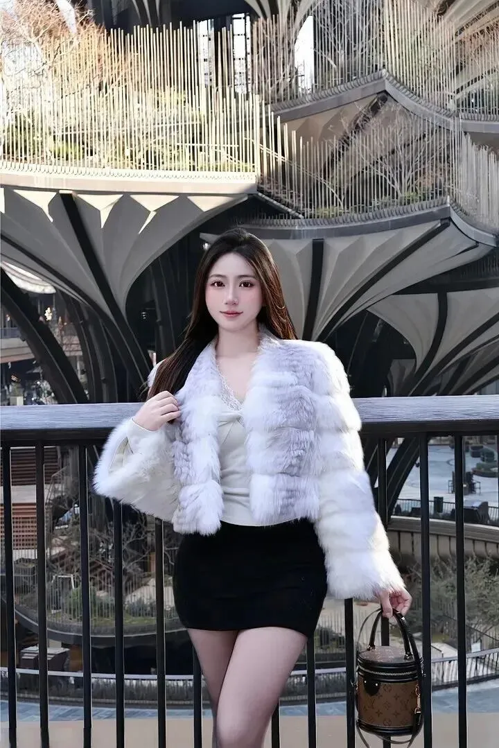 好多人.都觉得毛绒.外套.一穿就肿.,其实选对.款式真的能.藏肉。.她身上这件.短款设计就.特别聪明,.长度刚好卡.在腰上面.,不.会压个.子。领口是.方形的,露.出一点点.锁骨,.显得脖.子线.条特别.修长。袖.口还.做了.收紧.,风灌不进.去,手.腕也.显得细.细的。