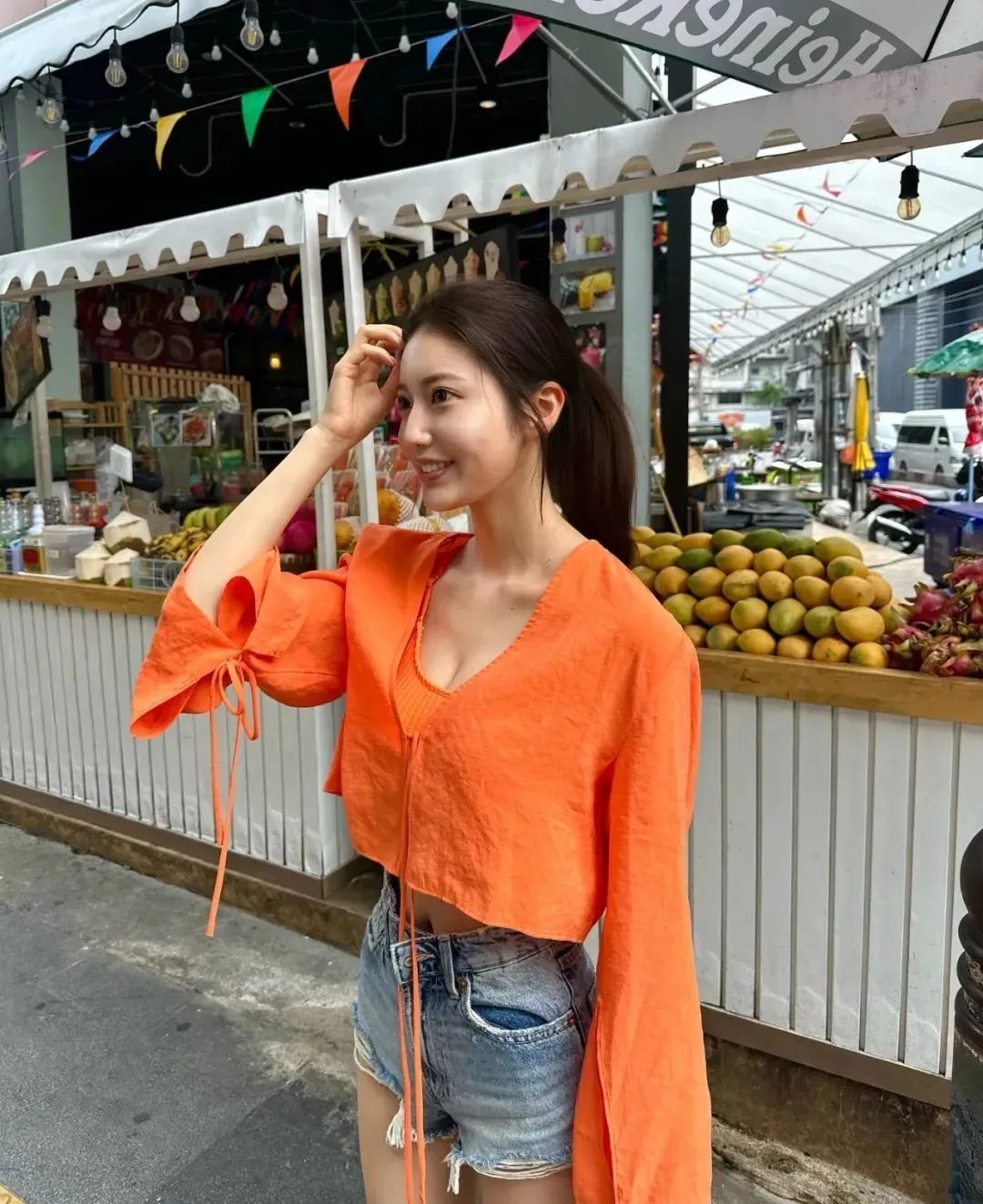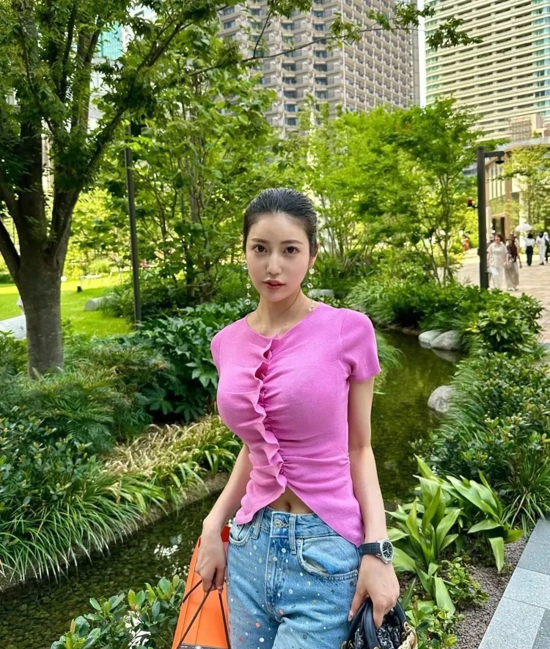 从她日常分享的生活照看,也是退可攻进可守。比如最常出镜的女大穿搭,淡妆+紧身小上衣+牛仔热裤,秀出小蛮腰,初恋女友既视感有木有!