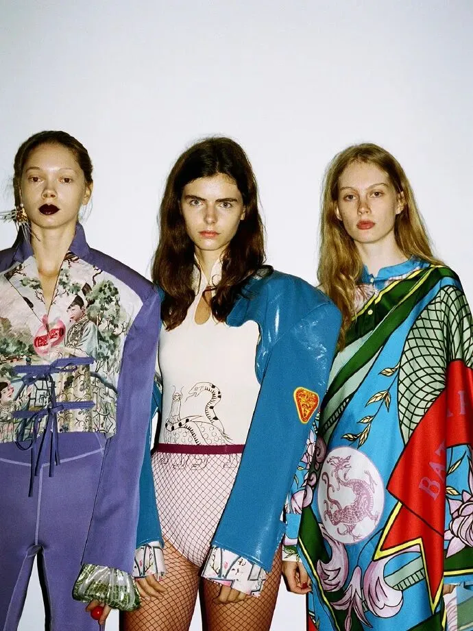 比如美国时尚插画师也是设计师的Jenny Walton这几年就贡献了不少新中式的街头穿搭,而那些布满了中式龙凤纹、花鸟鱼兽刺绣的夹克、丹宁等,也一度成为潮酷青年最挚爱的单品~