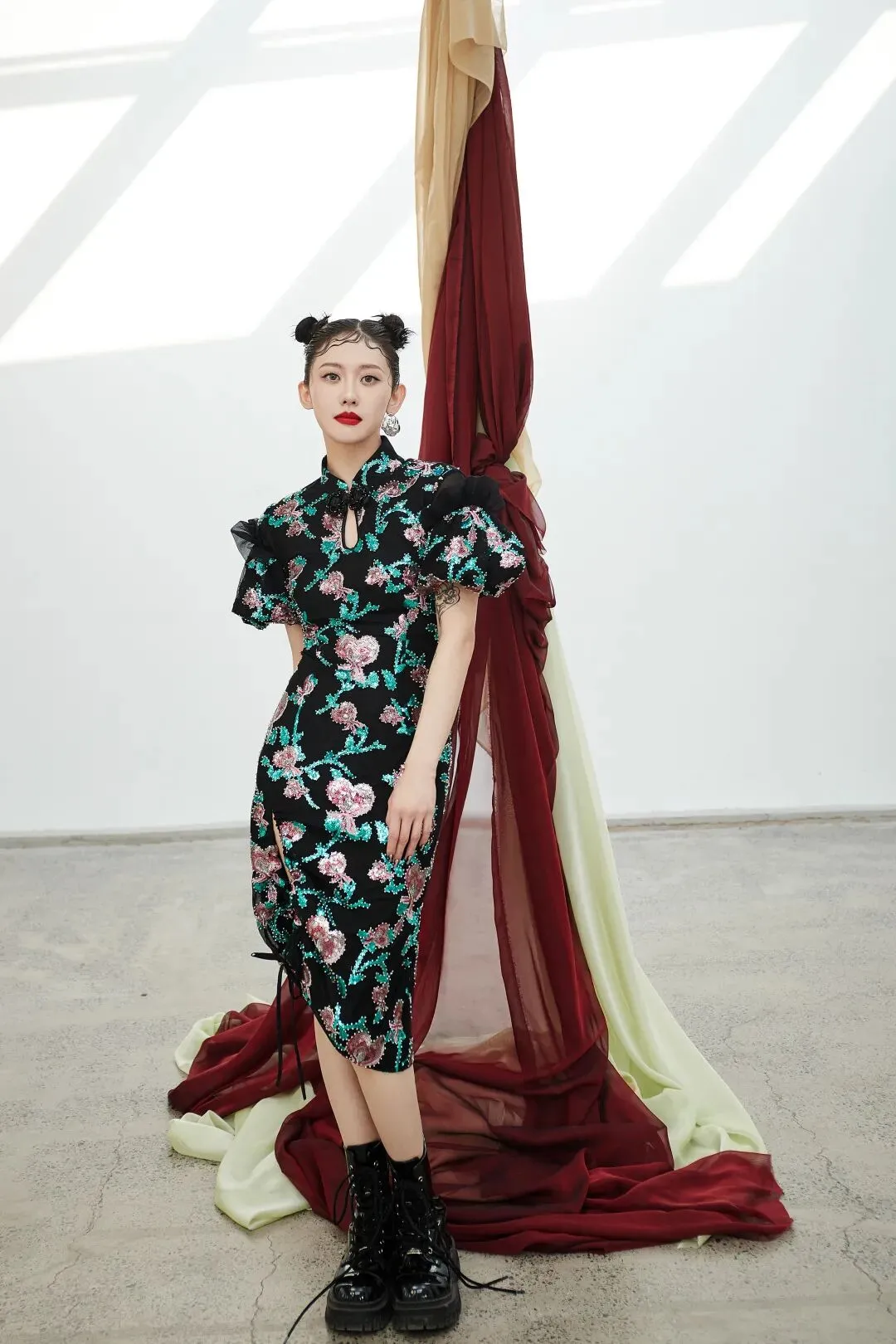 包括整体造型中的“哪吒”丸子头,以那双极为粗犷的厚底马丁靴,都属于「新中式」中不可分割的一部分吧。这也是「华韵新中式」保持永不过时的新鲜感、生命力的关键。