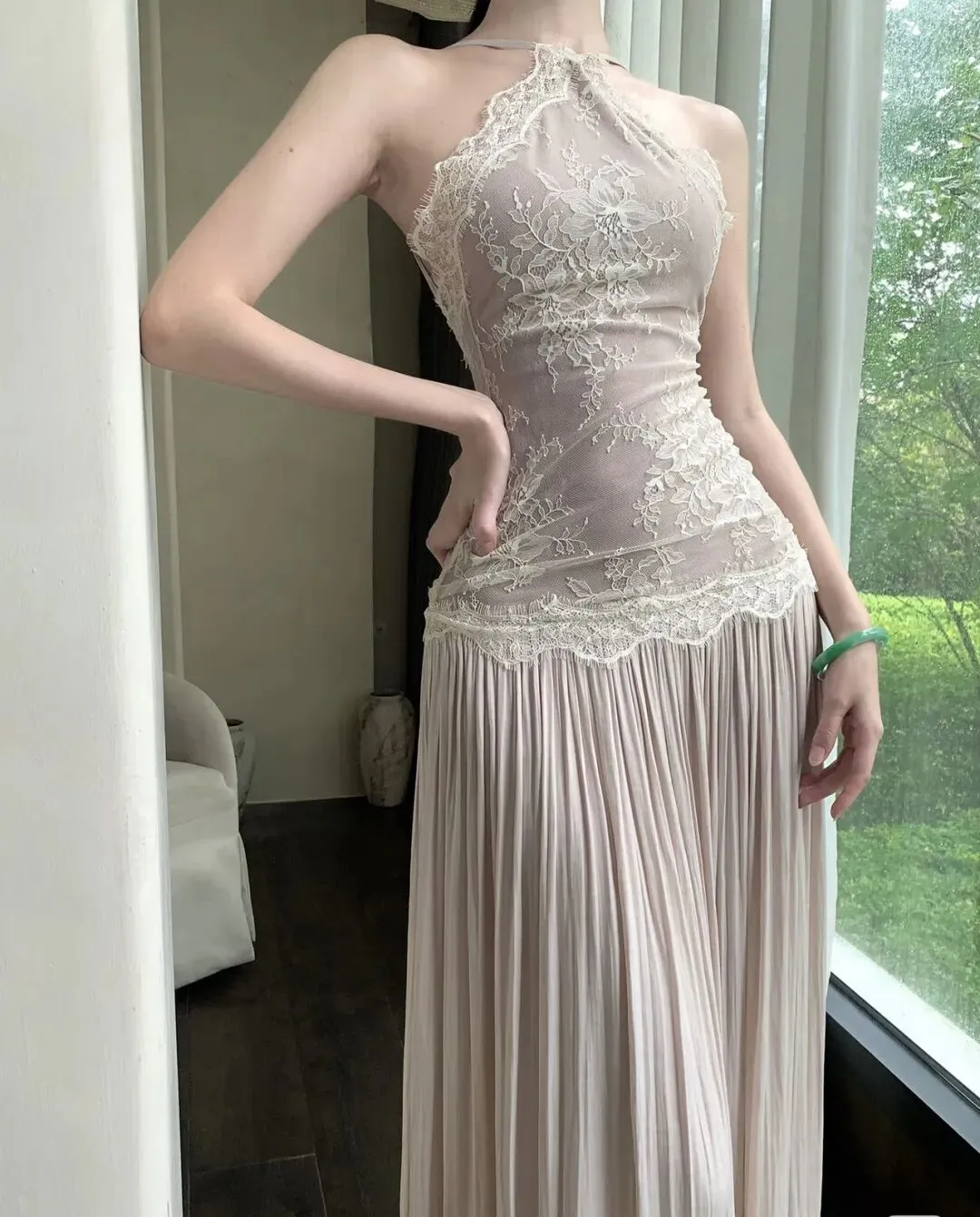 总之,这条裸粉蕾丝挂脖长裙,把温柔、性感、优雅、慵懒所有美好词汇都占全了,不管是颜值、版型还是实用性,都无可挑剔!想要提升氛围感、变身温柔系美女的姐妹,真的可以闭眼冲,穿上你就知道,原来自己也可以这么美!