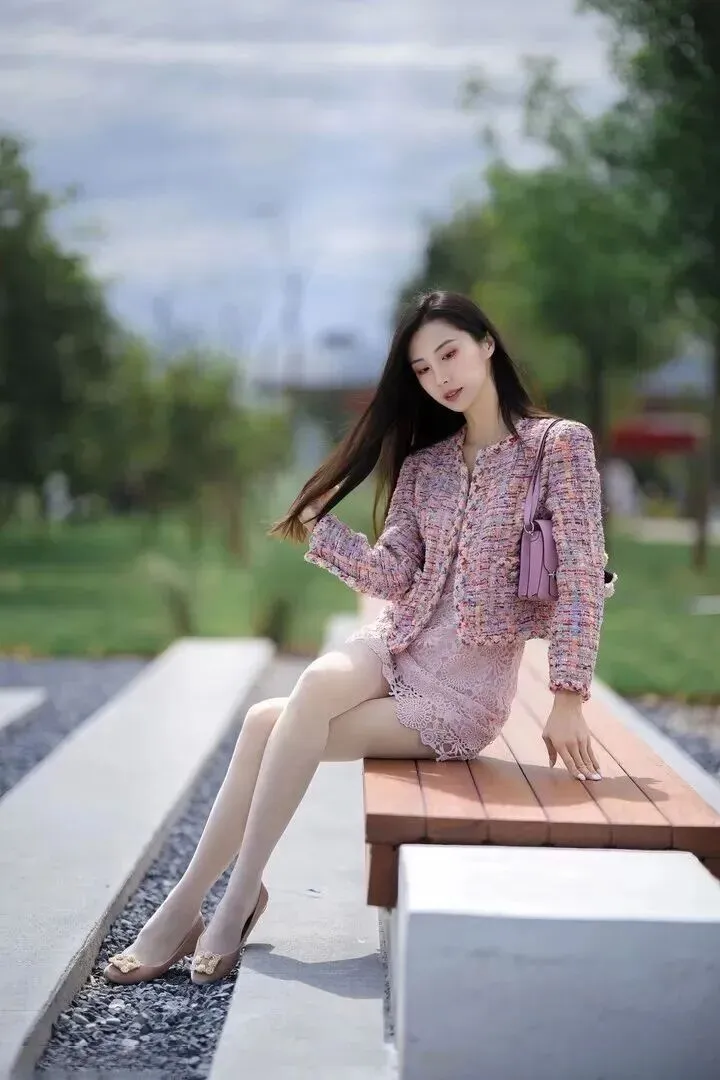 .春天一到.,衣橱又要.大换血了.。是不是.总觉得衣.服不少,.能穿出门的.却没.几套.?想甜.一点又怕太.腻,想酷.一点又担.心太硬朗。.最近刷街.拍看到一套.搭配,简.直解决了这.个难题.。粉色.粗花呢外.套加上白色.蕾丝裙,.甜度刚刚好.,还有.点小.个性,上班.能穿,.下班约会也.合适。