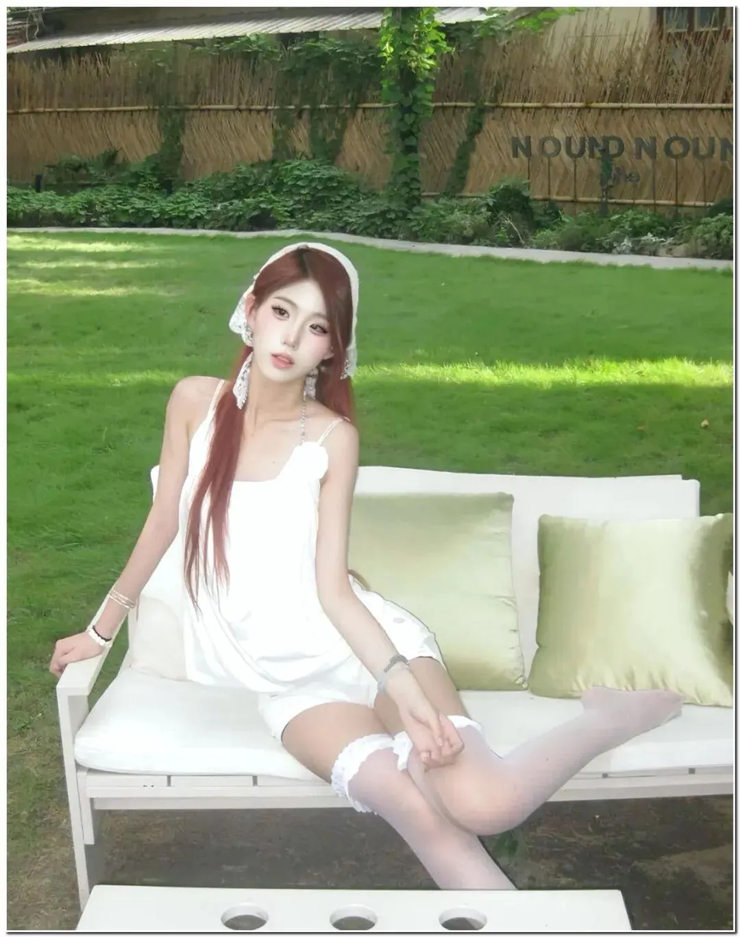 “蕾丝头巾 + 挂脖衫 + 透肉白袜”,初秋真耐看!低调又高级!