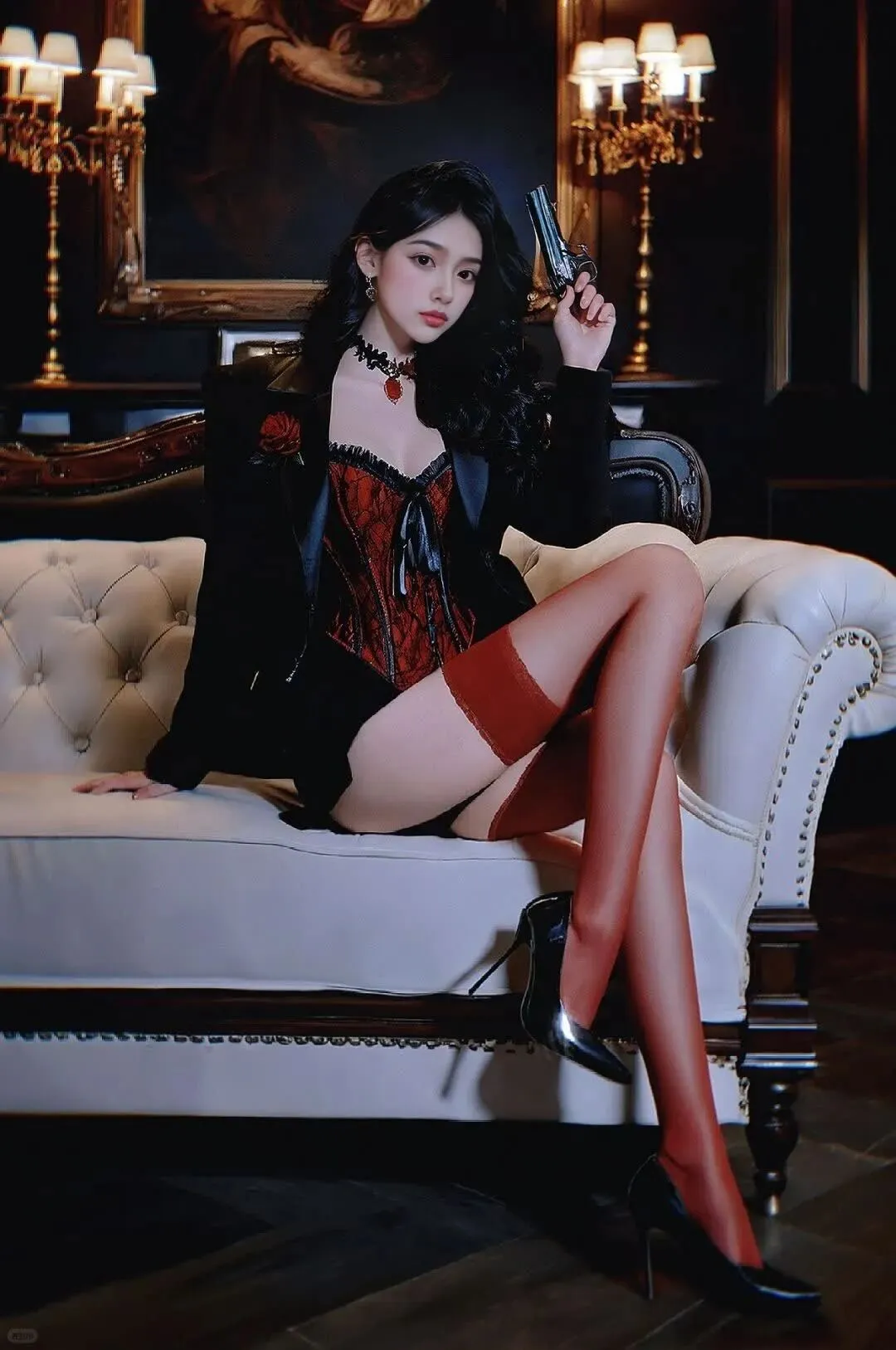蕾丝与黑带的碰撞,是今天的温柔小心机