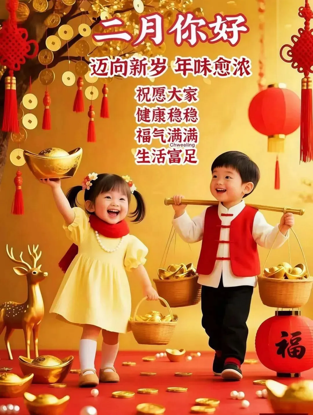2026.2.5日开心萌娃祝福图片:2月的你一定要开心快乐呀