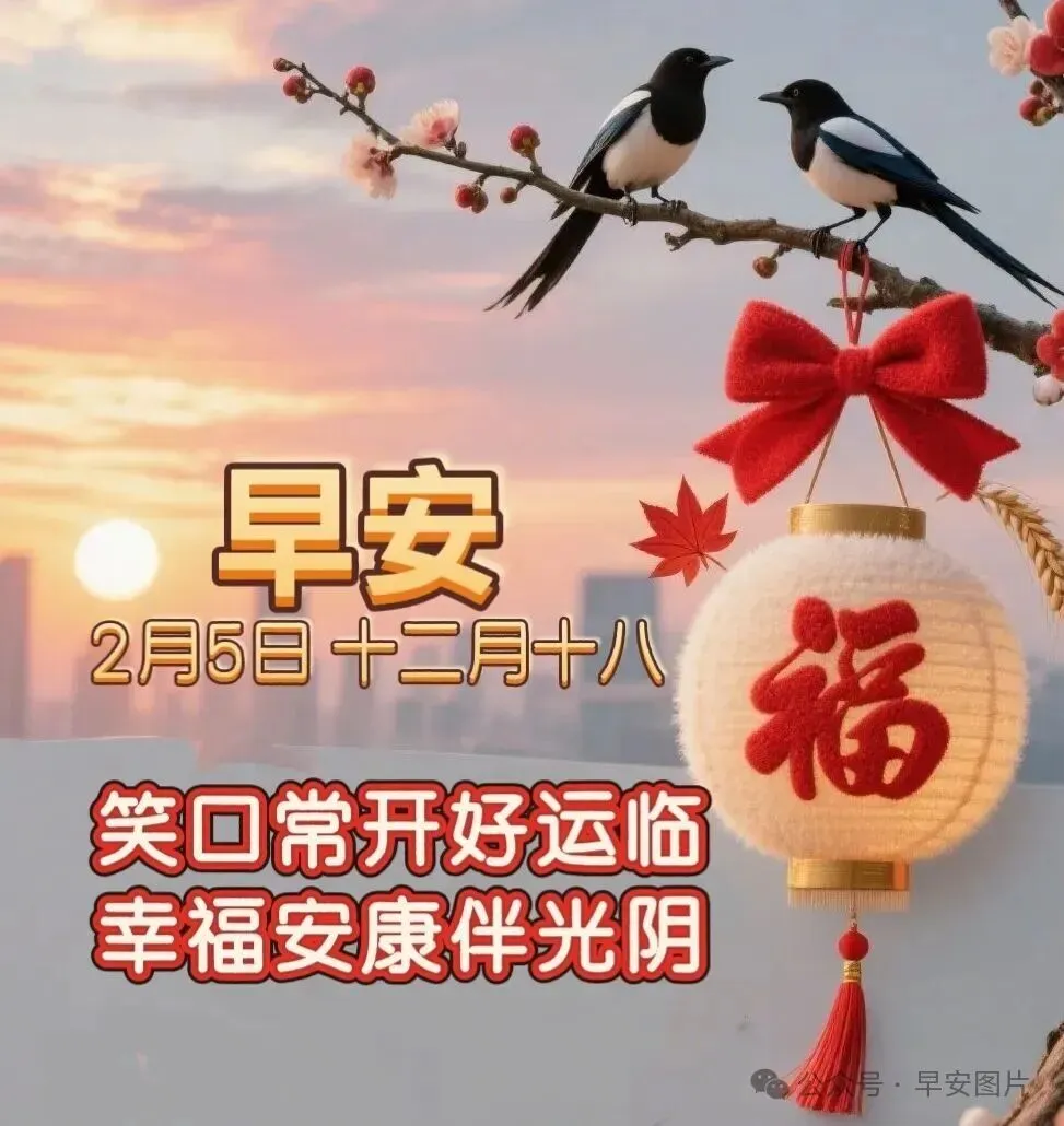 2026年2月5日周四早安祝福图片,希望所有的欢喜和遇见,都可以在这个冬天安全抵达