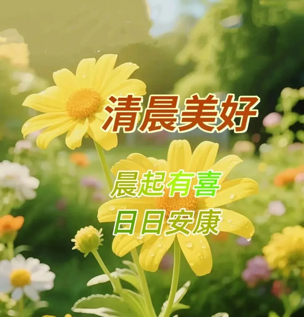 清晨祝福似暖阳,健康幸福伴身旁,新的一天新气象,愿你每天都安康。岁月静好心舒畅,开心快乐无忧伤。祝福满满心意长,笑容灿烂映朝阳。早上好!
