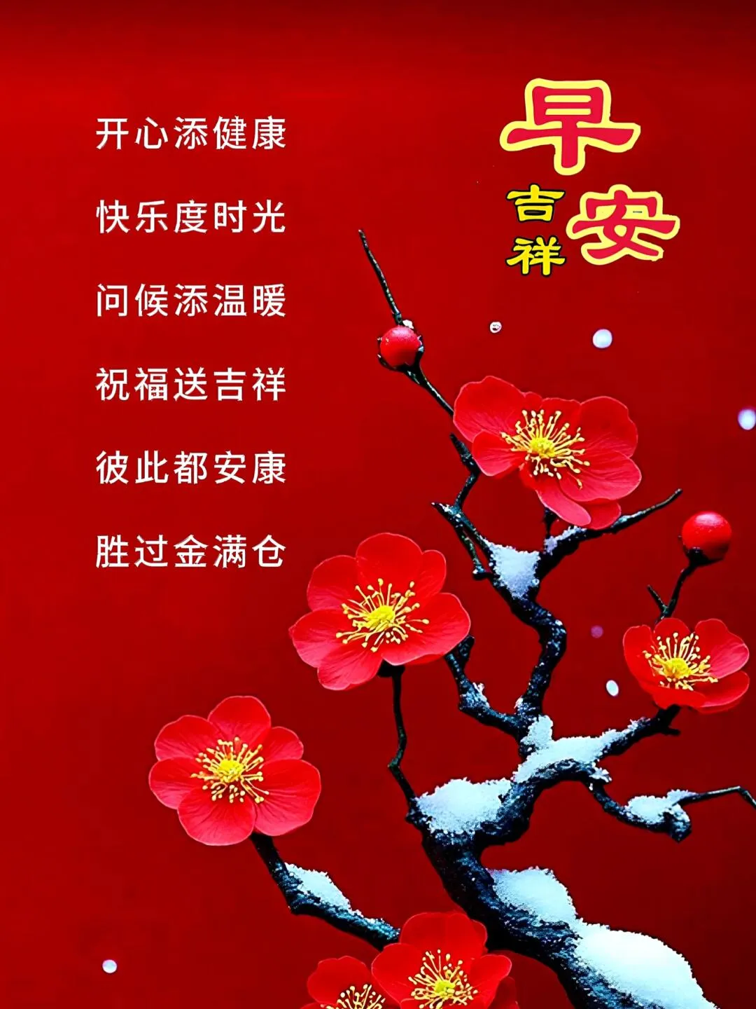 喜气洋洋送吉祥。一送,好运不可挡,天天赚钱幸福忙。二送,温情心中藏,朋友之间莫相忘。三送,福禄与健康,愿你身体强又壮。四送,幸福万年长,祝你快乐又安康。早上好!