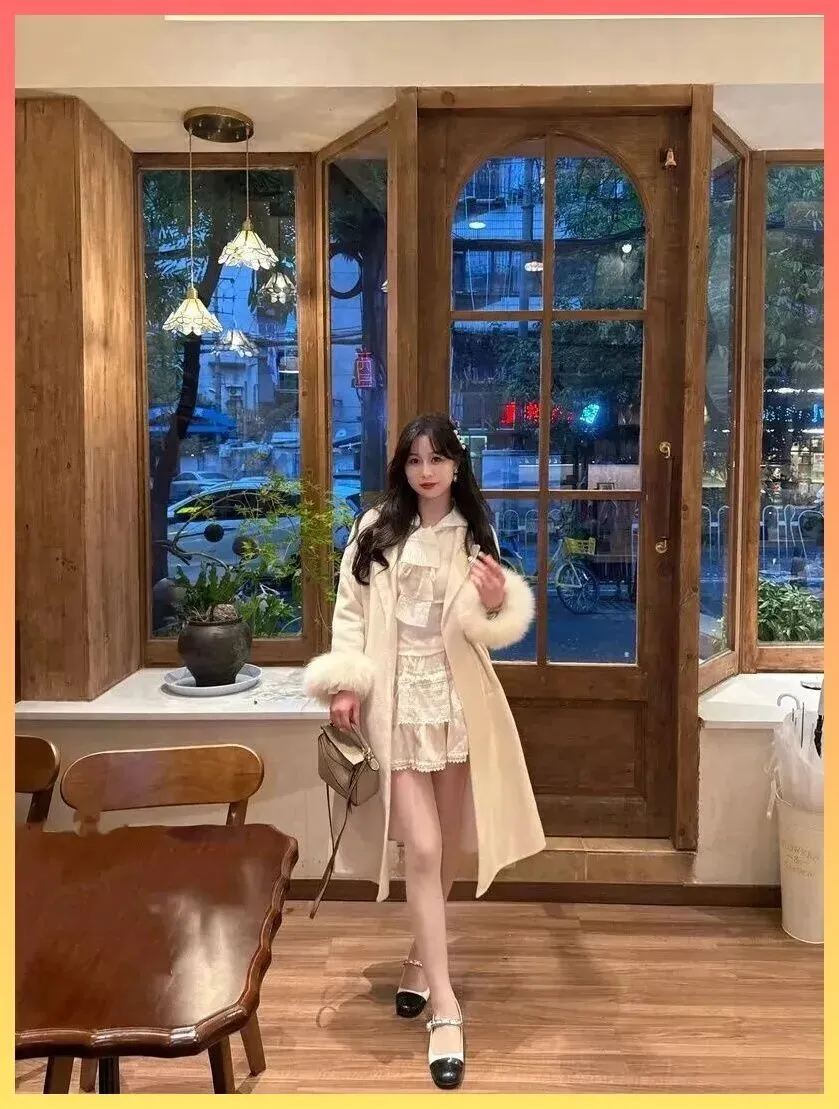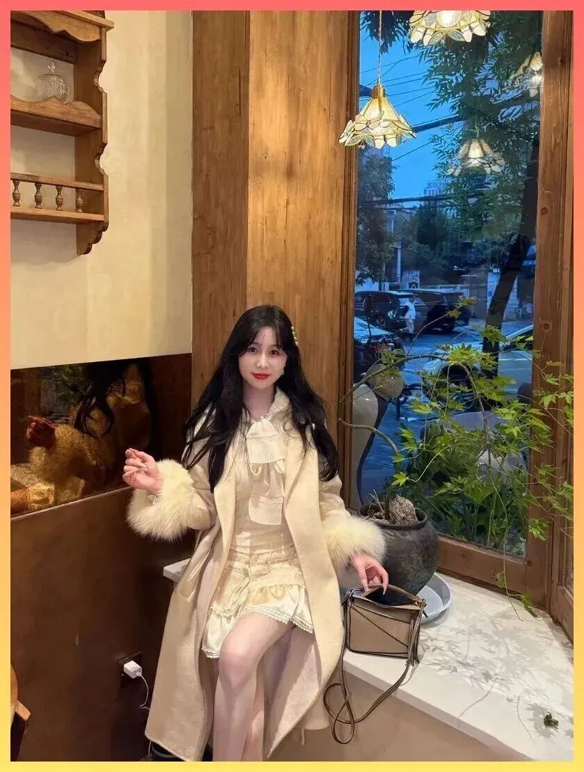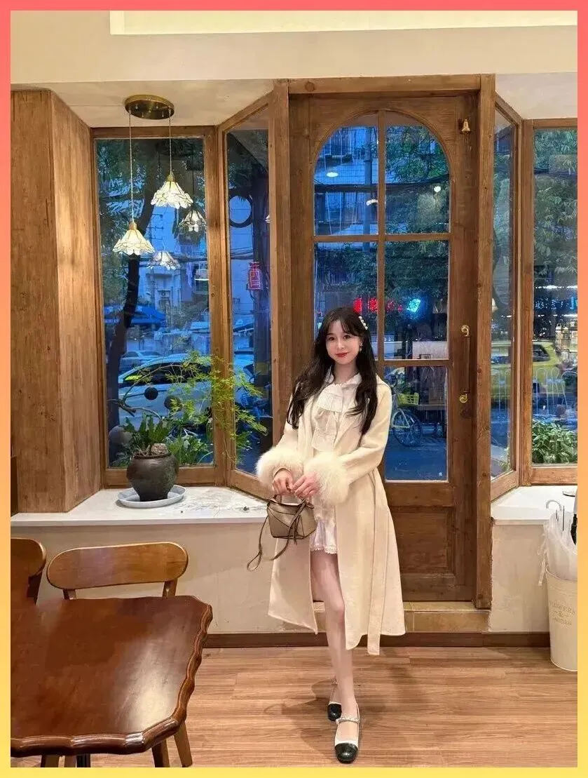 奶乎乎的富家千金感! 米白大衣+蕾丝裙,这才是约会穿搭的天花板