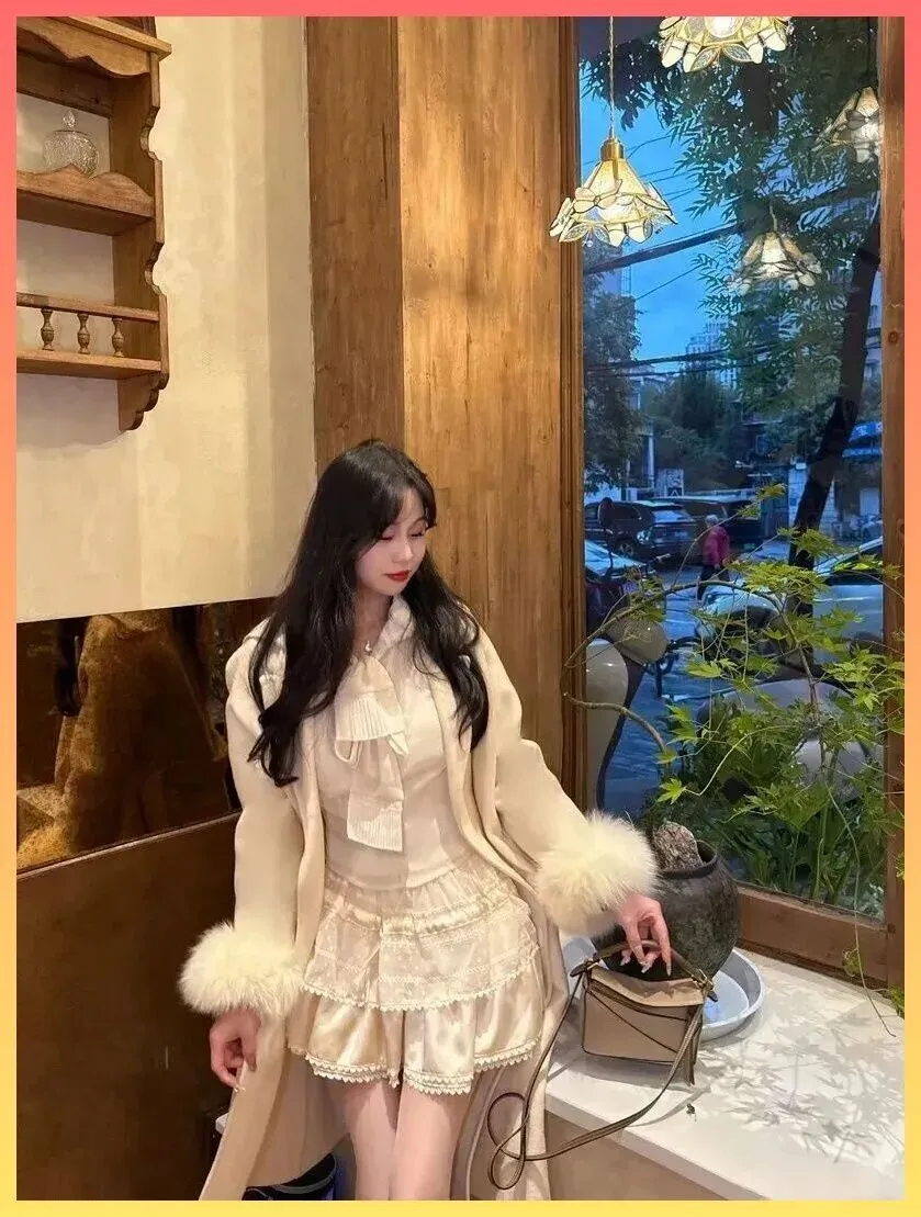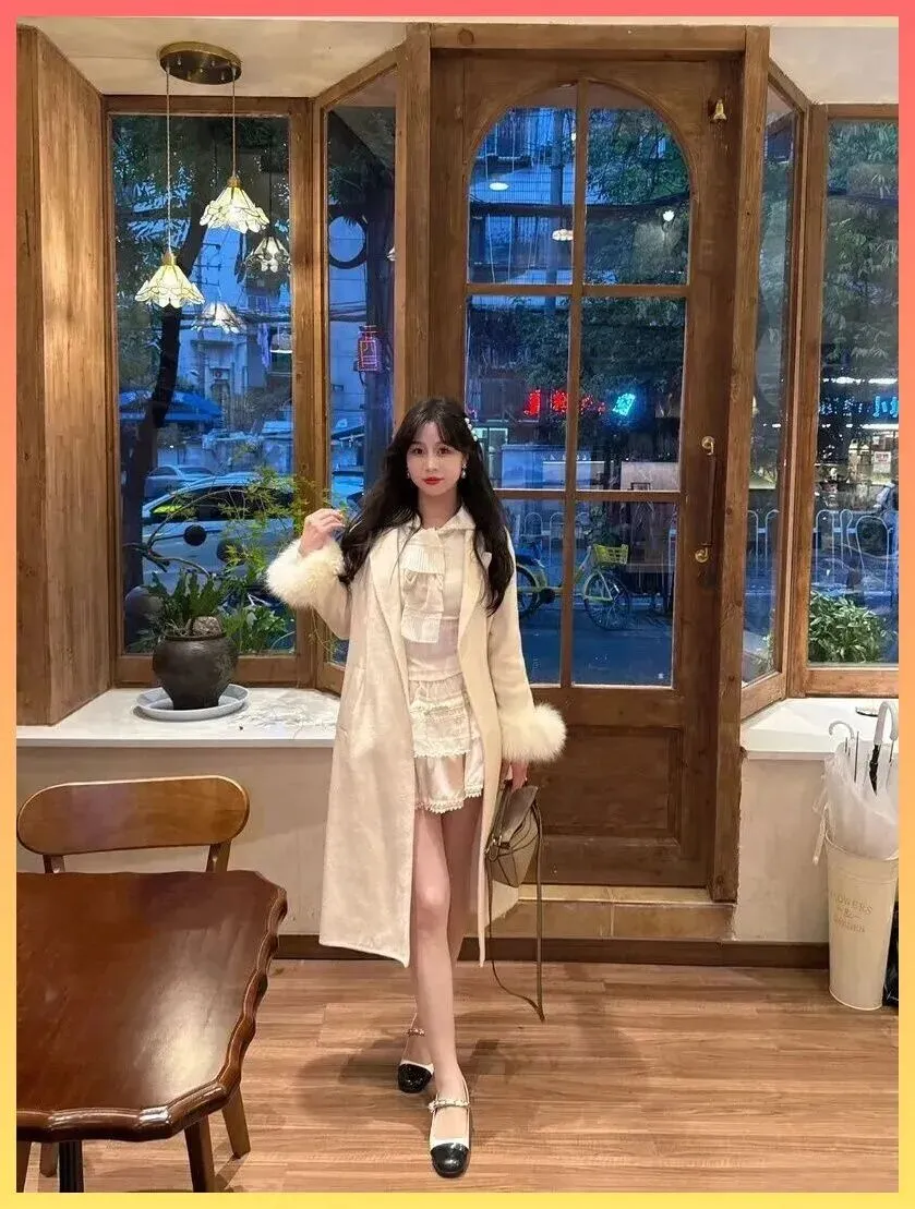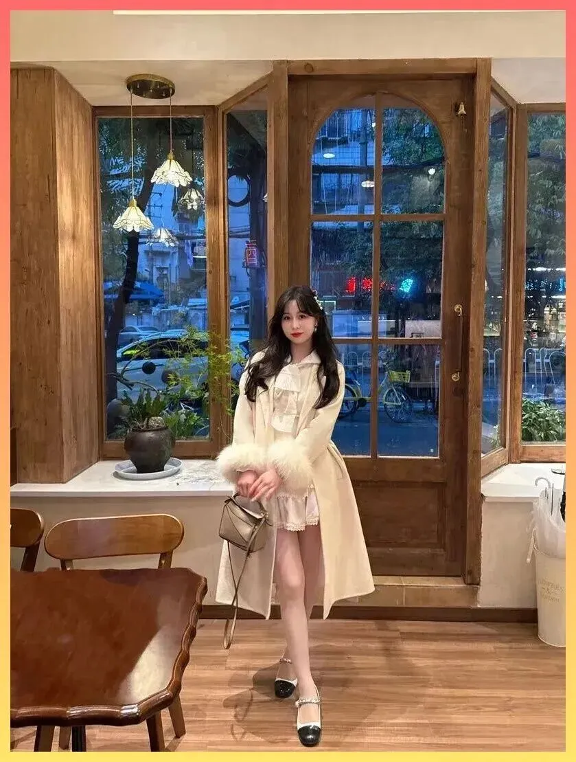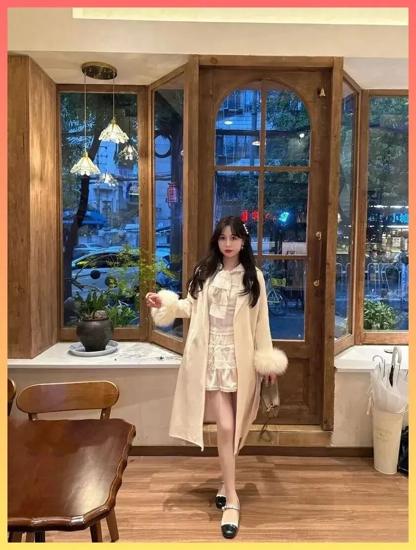 奶乎乎的富家千金感! 米白大衣+蕾丝裙,这才是约会穿搭的天花板