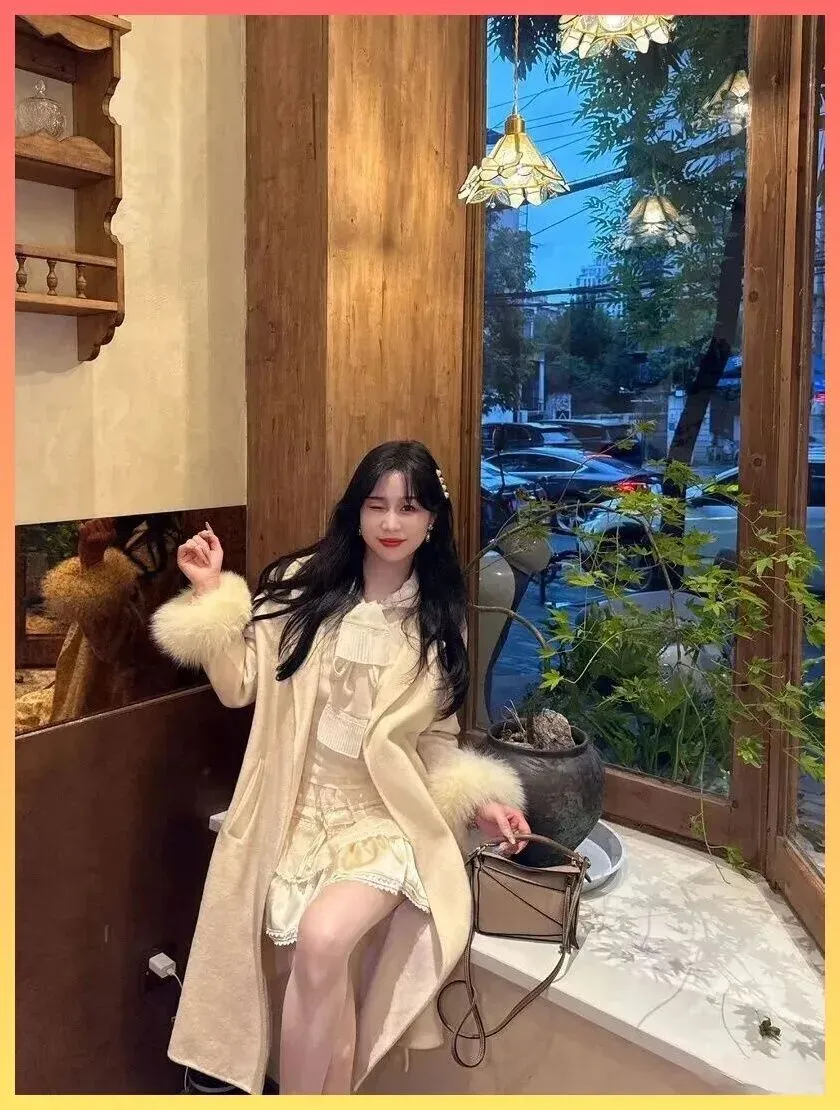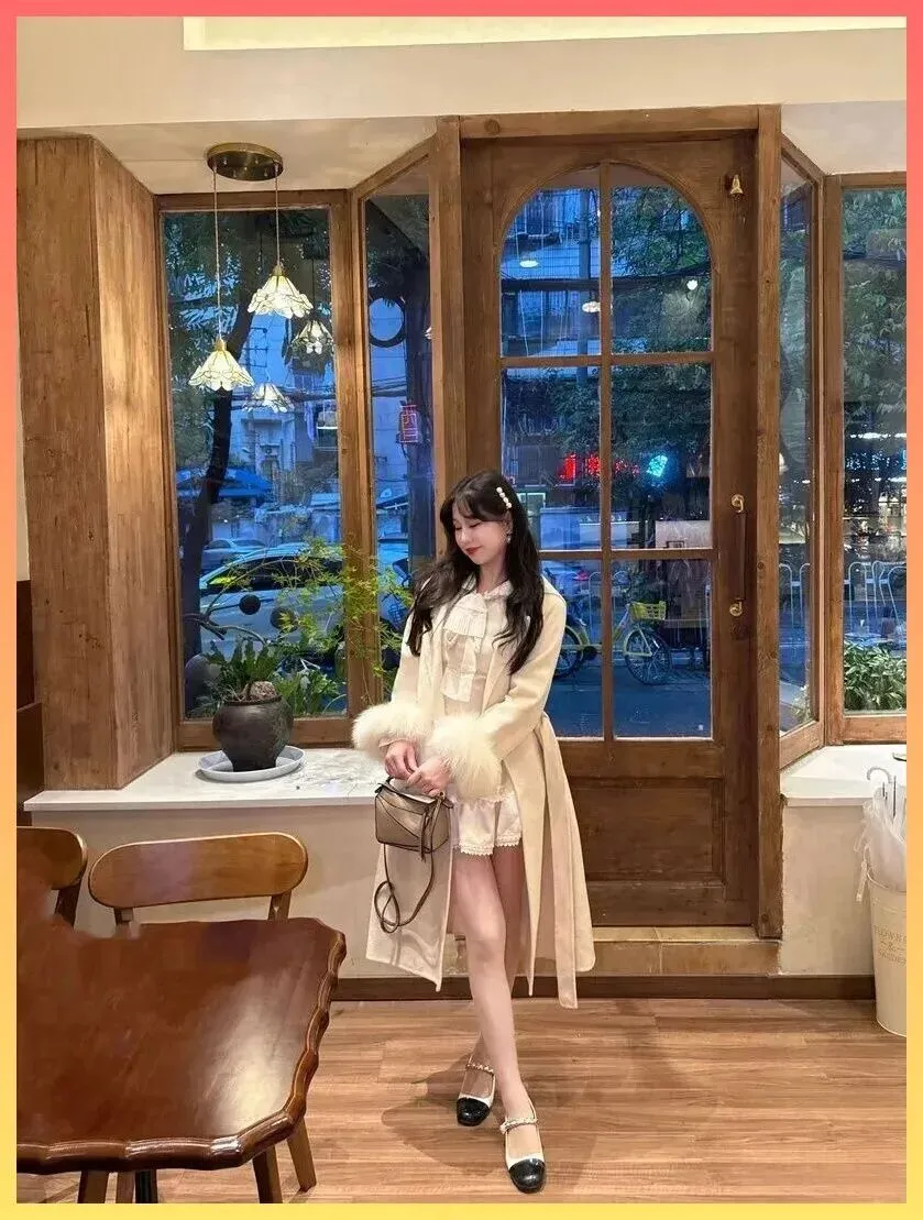 这件大衣最绝的设计...袖口。毛茸茸的袖口拼接.是整件衣服的灵魂,不仅看着暖和,举手.投足间那种灵动感瞬间拉满. 这种带点皮草元素的点缀,既避免了全皮草的臃肿和老气,又保.留了那份.奢华感,简.直是拿捏气质的神器。