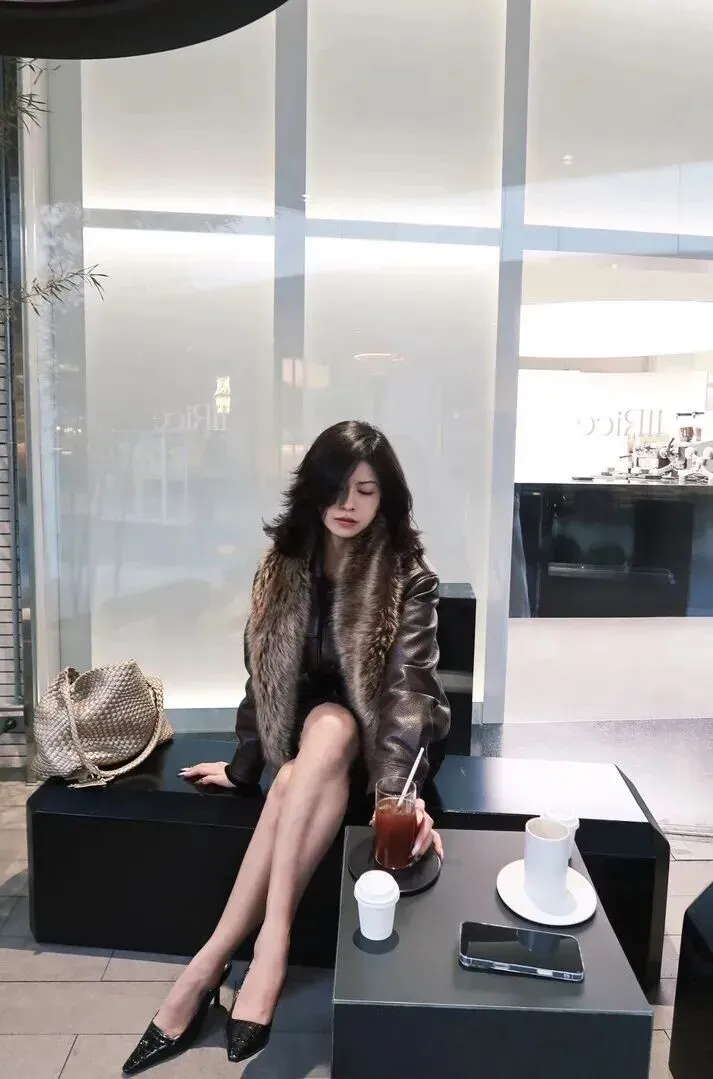 逛累.了找家.咖啡馆坐坐.,脱.下外.套又是.另一种.风格。内搭.的毛绒装饰.软乎乎的,.摸着.特别.舒服。