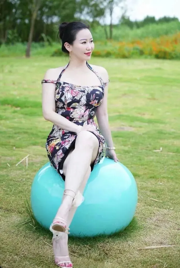 .照时可.以试试坐.在瑜伽球.上,一.条腿伸.直一条腿.弯曲,这样.特别显腿长.。背景选在.草地或者.花丛旁.边,下午三.四点的阳.光洒在身上.,拍出.来的皮.肤质.感特.别好。