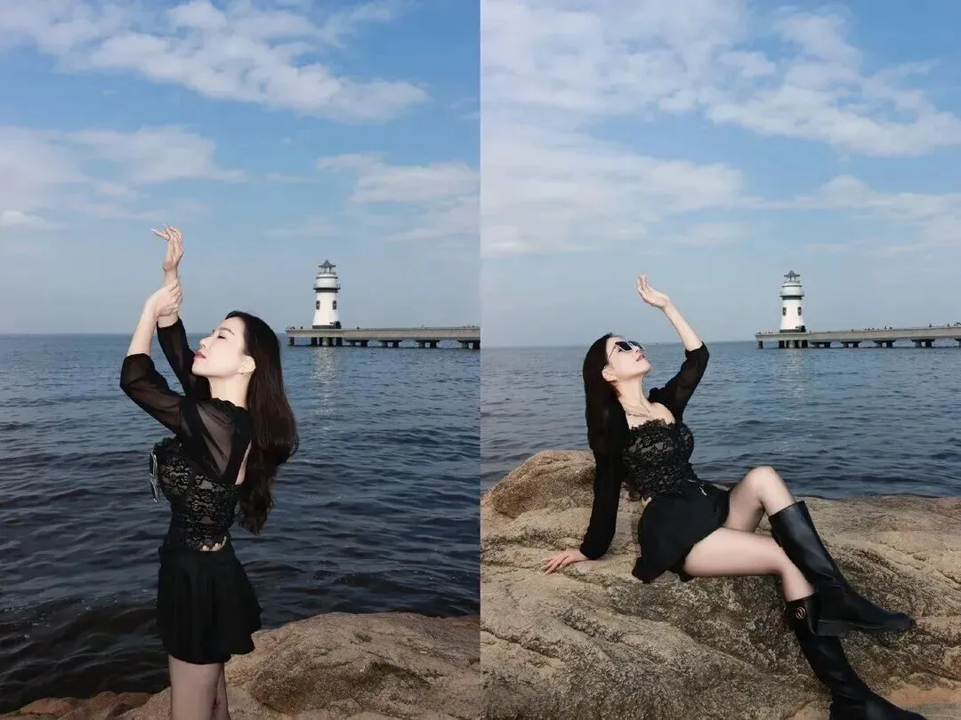 海边黑色穿搭杀疯了!这姐的蕾丝造型让我看了整整三天三夜…