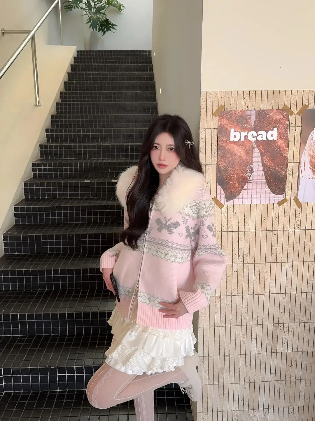 当前位置:首页>美女资讯>颜值穿搭:“粉色毛领提花毛衣+蕾丝蛋糕裙+纯欲白丝”,软糯温柔,立春时节的甜美小公主