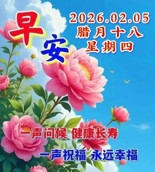 今天是2026年2月5日,星期四亲爱的,又是新的一天,愿美丽的阳光美丽你的心情,好运与你相伴行。不忙碌,不烦恼,绽放你的微笑,感受生活的美好,把幸福紧紧拥抱。周你好!