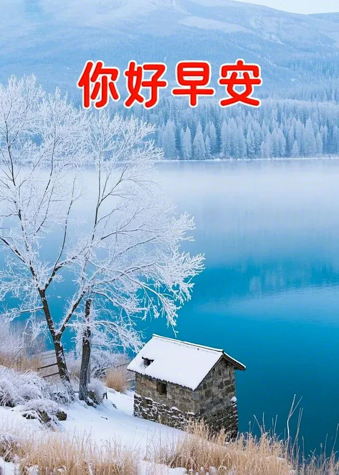 远山如黛,近水含烟,冬日的画卷总是淡雅而深沉。愿你像那挺拔的青松,不畏霜雪,在这静谧的清晨,守住内心的宁静与坚韧。早安!