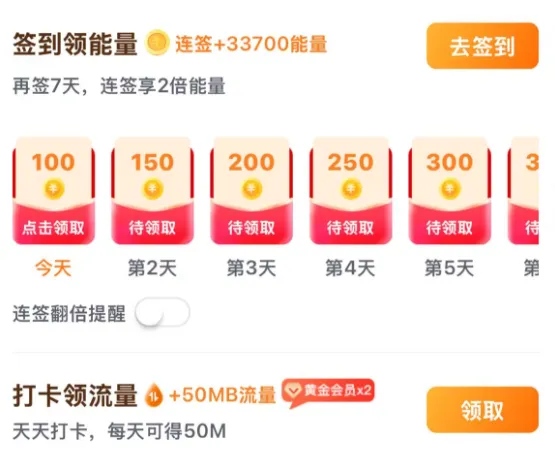 连续签到7日,能量值翻2倍